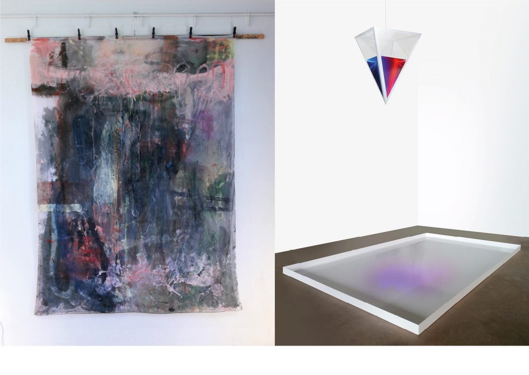 Giovane architetto, fotografo, artista visionario ed eclettico, David Lascaris vive e lavora ad Amsterdam. La sua ricerca parte dal concetto di spazio, come luogo fisico ed esistenziale e si sviluppa attraverso l’utilizzo di diversi media. Le sue Apnee sono scatole di plexiglass contenenti layers di fotografie subacquee stampate su fogli trasparenti di acetato. La sovrapposizione dei layers scompone e sfoca l’immagine che sembra cosi’ sciogliersi in un liquido colorato come all’interno di un acquario. L’acqua impasta, lega collega lambisce e divora, e’ un vero collante che ha il potere di unire o modificare gli altri elementi, e’ il fluido primordiale da cui differenziarsi ed evolversi, un elemento simbolico di rinascita e trasformazione. La scatola si trasforma e diviene in ‘Fluido di genere’ una piramide rovescia divisa a metà e riempita di liquido rosa, da una parte, e di liquido azzurro, dall’altra, metafora dei nostri preconcetti sull’identità di genere. La piramide è sospesa sopra una vasca bianca di alluminio riempita d’acqua. Dalla punta della piramide il colore sgocciola lentamente producendo effetti imprevedibili fino allo svuotamento. Cio’ che prima era perfettamente definito e distinto diventa indeterminato ed inaspettato. La dualità di concetti antitetici scaturisce dalle limitazioni imposte dalla visione umana che tende a definire confini per spiegare una realtà che invece e’ fluida.