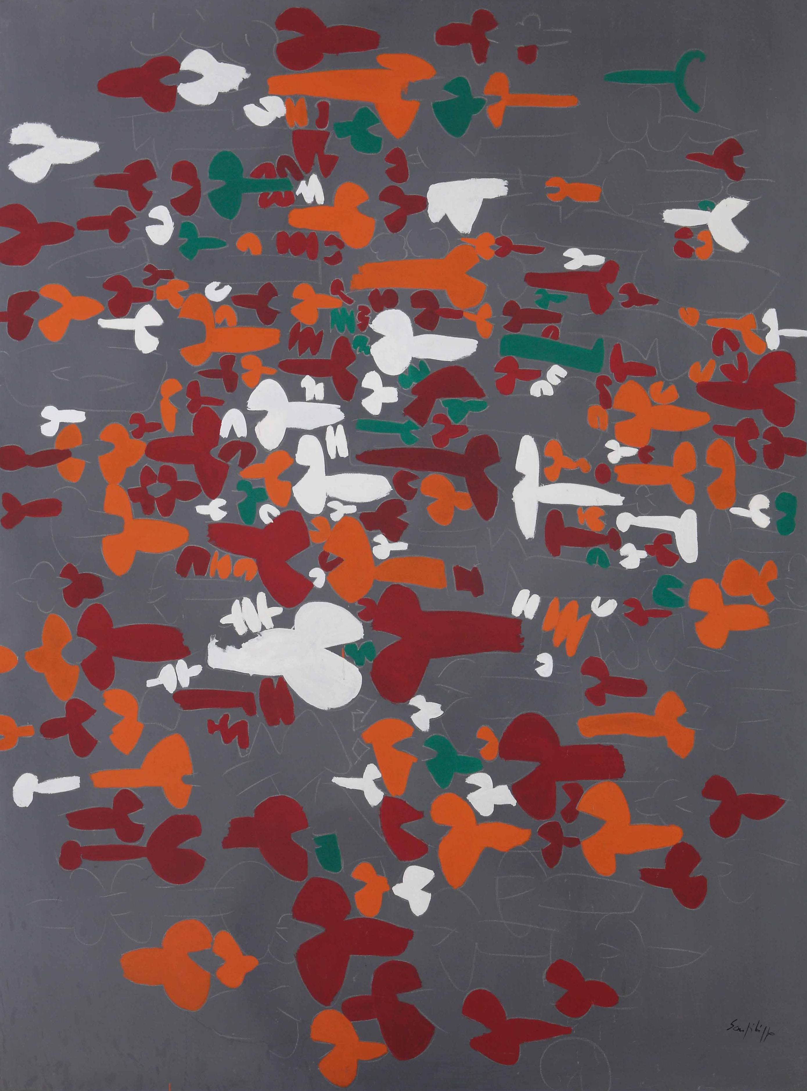 Sul versante opposto, quello della ricerca sull’astrazione, continuano a muoversi gli esponenti di quello che era stato il gruppo di Forma 1 (come Accardi, Dorazio, Perilli, Sanfilippo, Turcato). Perilli sottolineava come, a differenza che per l’astrattismo di marca geometrico-essenzialista, per Forma 1 era fondamentale il legame della forma con la “realtà” e con l’“ambiente”, e chiamava dunque in causa la centralità del soggetto che la percepisce: forma come “sintesi dell’uomo” nella sua esistenza individuale, sembra il concetto cardine attorno al quale ruotano, nei loro diversi e personali sviluppi, le poetiche aniconiche di tutti gli esponenti del gruppo. In ogni fase dello sviluppo della loro ricerca, resta notevole questa capacità di conciliare la prospettiva formalista e “purovisibilista” con una comprensione della forma che non esclude il punto di vista della scienza e della psicologia. Perilli è poi protagonista, tra la fine degli anni ’50 e l’inizio degli anni ’60, insieme a un altro grande pittore partito dalla ricerca astratto-informale, Gastone Novelli, di un’esperienza di ricerca avanguardista (vicina alle avanguardie letterarie del “Gruppo 63”) volta alla conquista di una “nuova figurazione”. Quella stessa “nuova figurazione” alla quale attingerà all’inizio degli anni ‘60 Mimmo Rotella, che negli anni ’50 realizza ancora splendidi Décollages astratto-informali dalla forte suggestione pittorica, che si manterrà anche quando il lavoro sui manifesti si sposterà verso il “figurativo”, consentendo la riconoscibilità dell’immagine in essi riprodotta. Nell’ambito della ricerca sull’astrazione vengono prese in esame alcune affascinanti figure di artisti più “isolati”: come Luigi Boille, trasferitosi a Roma nella seconda metà degli anni ’60, dopo aver vissuto molti anni a Parigi, operativo nell’ambito dell’Informel di Michel Tapié; e Piero Sadun, artista riflessivo e sempre lontano dai clamori delle avanguardie, che giunge all’aniconismo solo all’inizio degli anni ’60, dopo un lungo percorso dedicato alla figurazione.