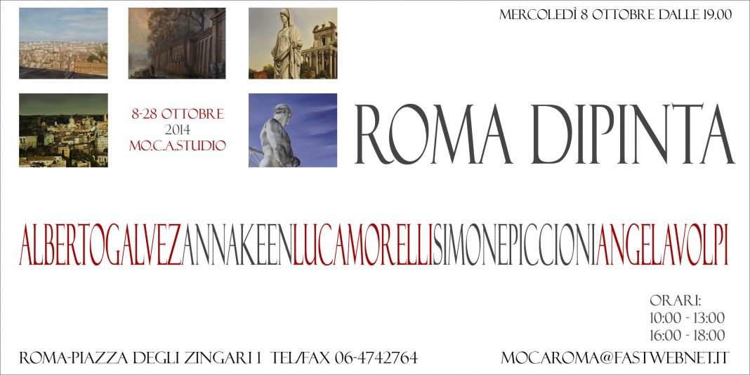 La mostra dal titolo “Roma dipinta” è il racconto della città eterna vista e interpretata da artisti di provenienze geografiche diverse come Alberto Galvez spagnolo e Anna Keen scozzese, che ritraggono la loro Roma sulla base delle emozioni vissute e del ricordo della luce.