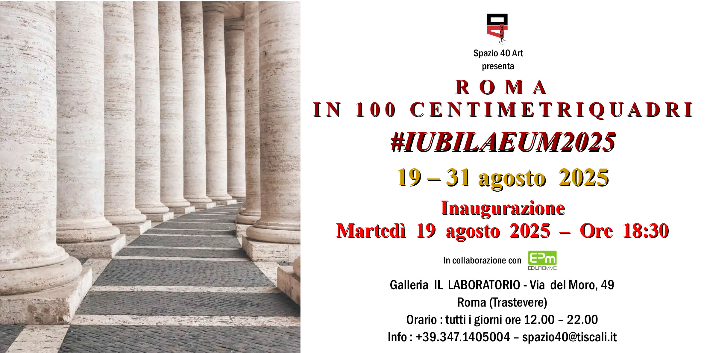 Anche quest’ anno, di concerto con Spazio40Art , collaborerà per la comunicazione sull’ evento EPM Edilpiemme, partner storico di Spazio 40 Art e della manifestazione.