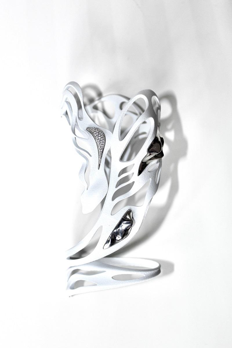 Igor Quagliata è un designer italiano di 25 anni, diplomato allo IED Roma nel 2022. Ha vinto il premio “Giovane Designer” alla Roma Jewelry Week e ha partecipato alla Joy of Color exhibition in Cina. Ha partecipato nel 2023 al progetto "The8” curato da Alessia Crivelli e Alessio Boschi. Appassionato di architettura, trasforma la sua arte in gioielli dalla forma fluida e tridimensionale, con un’estetica Digital-Punk. Utilizza la modellazione 3D e sperimenta materiali e tecnologie innovative. Vince il premio con il gioiello “Void Bracelet”; “Void racconta di fantasmi, esseri immobili che rappresentano le nostre paure più profonde. Void è anche la rappresentazione delle nostre ansie, paure continue che ci trasciniamo da sempre, portandoci in uno stato di angoscia, che ci blocca. E se fossimo noi i fantasmi di noi stessi? Se fossimo noi stessi quelle paure? Come se fossero la nostra personificazione come spettri, rendendoci incapaci di liberarci dal vuoto che ci circonda.” Alla mostra presso la galleria Incinque Open Art Monti oltre la collezione VOID, Quagliata presenta le sue collezioni: SPEED, rappresenta l'energia ribelle di un giovane che vuole cambiare il mondo; VORTEX, simboleggia il turbine delle sfide che ci circondano, la società moderna, con i social media, che riduce le nostre esperienze a brevi reel di 3 secondi; IGOR, la libertà di espressione, liberiamoci dalle maschere imposte dalla società e esplodiamo nella nostra autenticità.