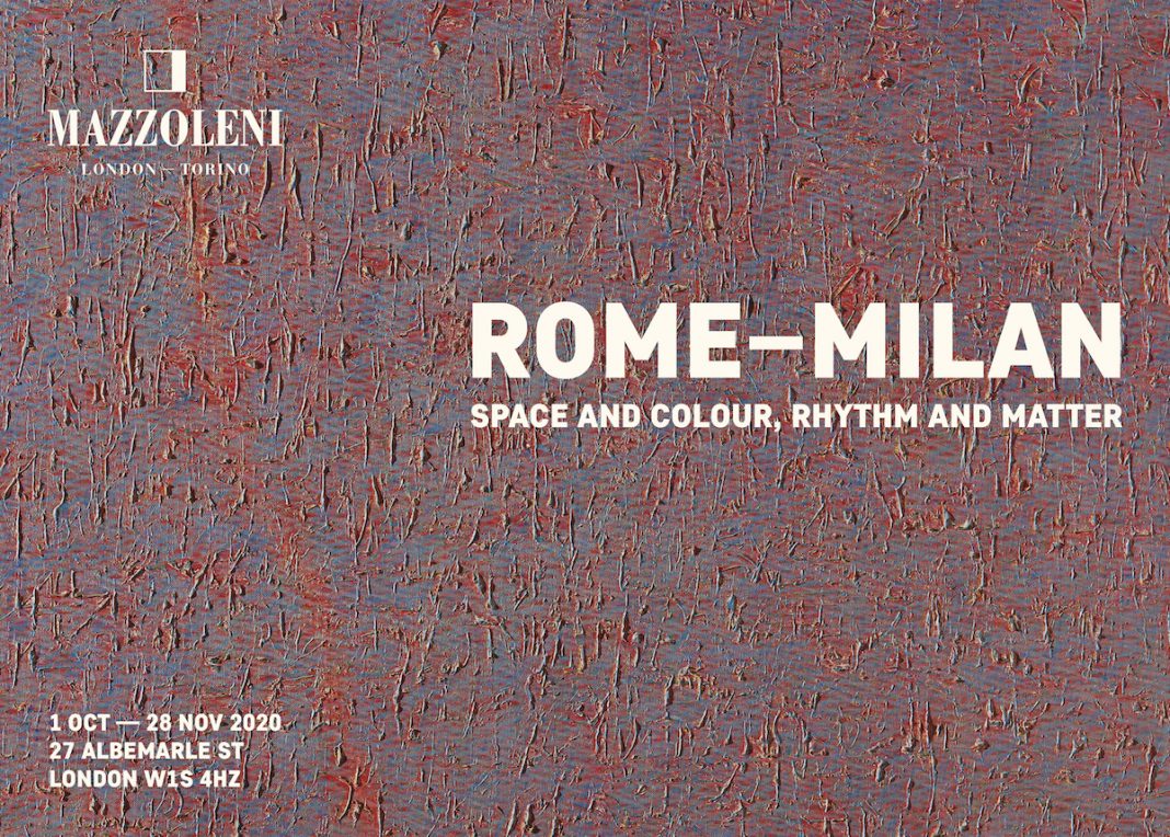 Mazzoleni è lieta di annunciare l’avvio della prossima stagione espositiva della galleria di Londra, l'1 ottobre 2020, con la mostra collettiva Roma – Milano: spazio e colore, ritmo e materia, che riunisce alcuni dei principali protagonisti della scena artistica italiana operativi nelle due grandi città della Penisola, con opere realizzate principalmente tra gli anni Cinquanta e Settanta.