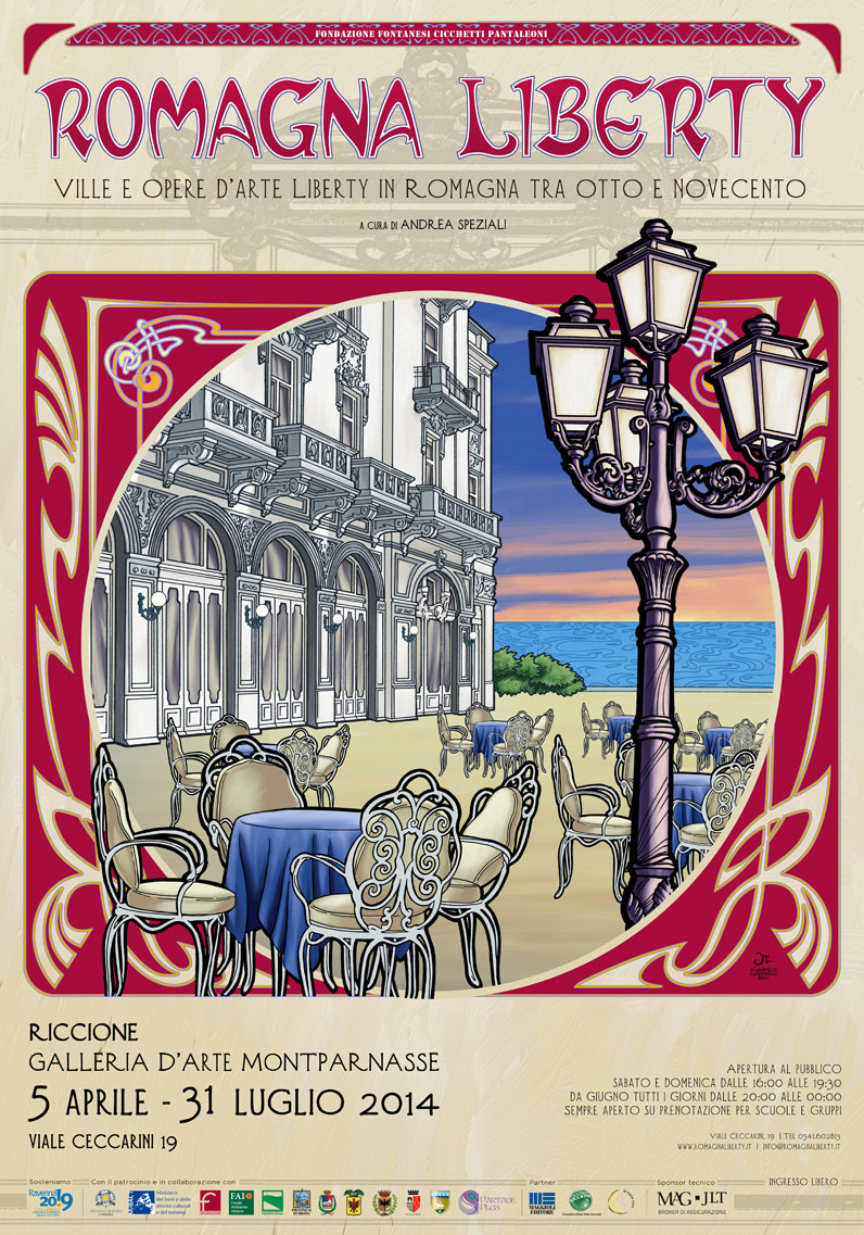 L’esposizione, curata da Andrea Speziali, studioso specializzato della corrente artistica conosciuta come “Art Nouveau”, si svilupperà a Riccione dal 5 aprile al 31 luglio attraverso una mostra documentaria di architetture Liberty e opere d’arte in Romagna, ospitata negli spazi della Galleria d’Arte Montparnasse, edificio che richiama il tema della mostra, in quanto caratterizzata da una parete esterna affrescata da quattro artisti torinesi agli inizi del Novecento.