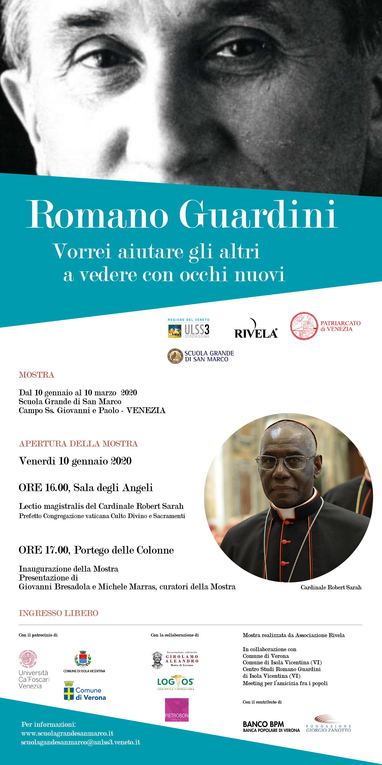 La mostra “Romano Guardini. Vorrrei aiutare gli altri a vedere con occhi nuovi” sarà esposta a Venezia presso la Scuola Grande di San Marco dal 10 gennaio al 10 marzo 2020.