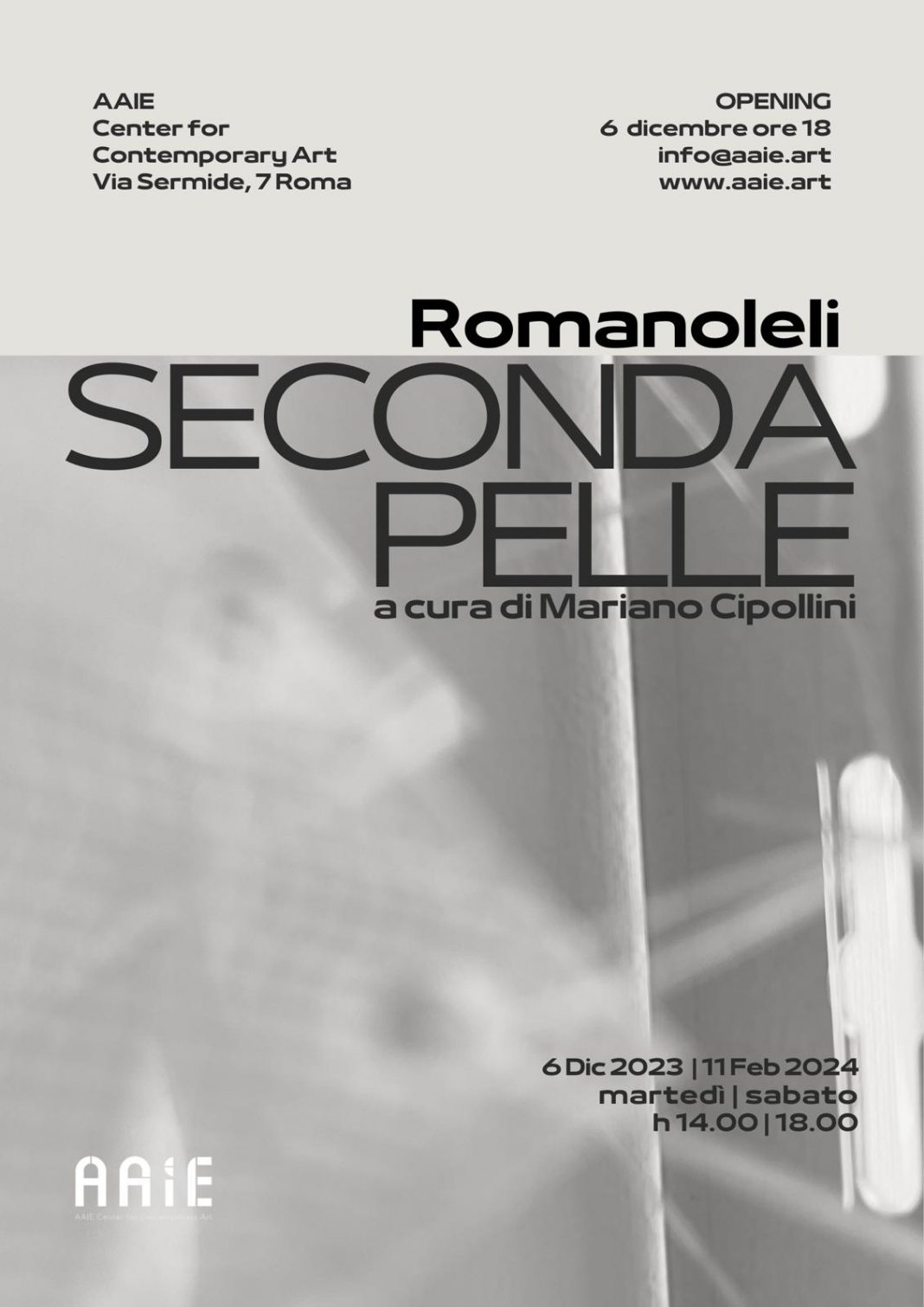 AAIE Center for Contemporary Art è lieto di presentare "Seconda Pelle", la mostra personale dell'artista Romanoleli, curata da Mariano Cipollini. Un'esposizione affascinante e complessa che si terrà dal 6 dicembre 2023 al 11 febbraio 2024, con un'inaugurazione prevista per Mercoledì 6 dicembre dalle 18:00 alle 21:00.
