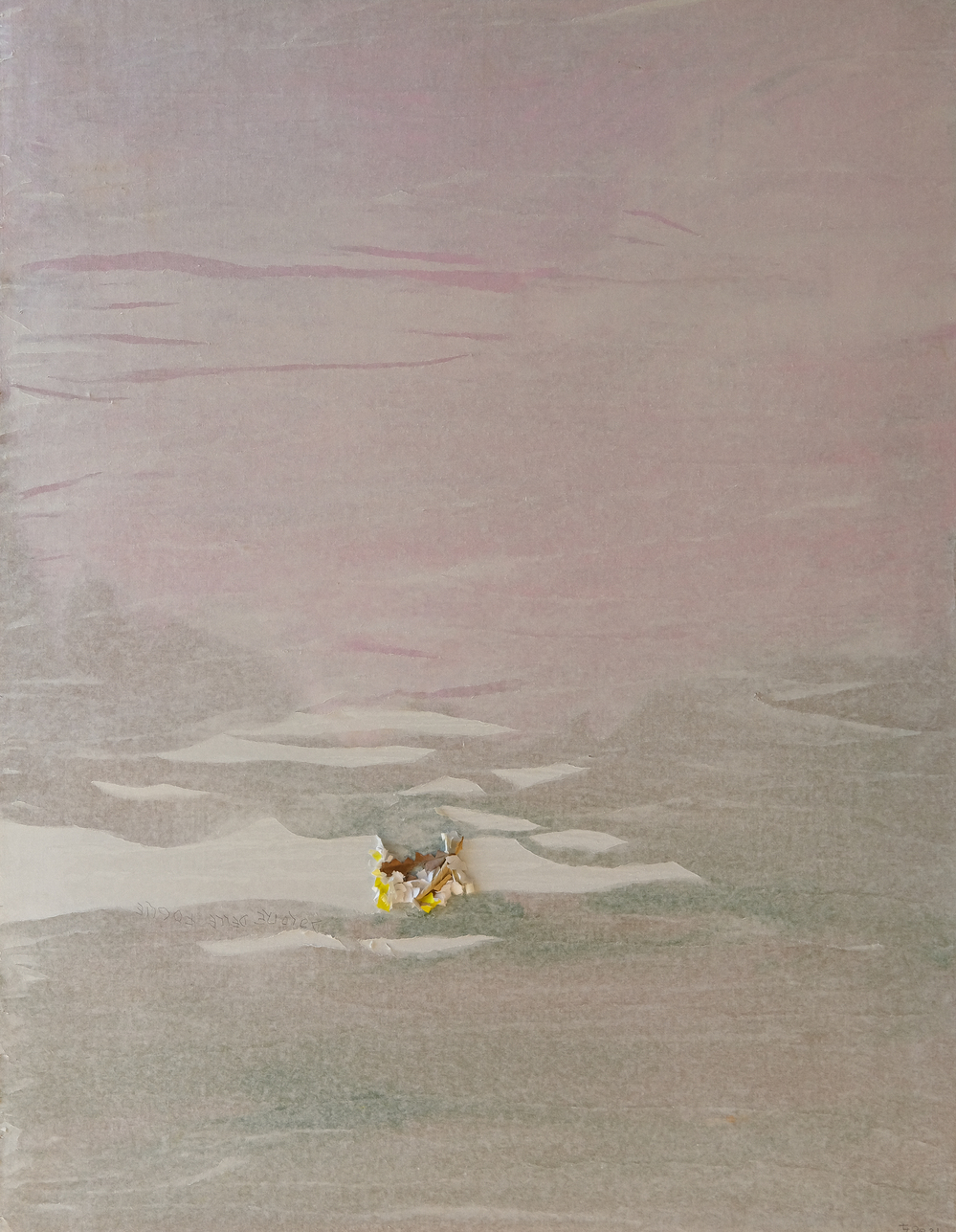 Le campiture evanescenti, dominate da tenui colori rosa e verdi, accanto alle tele più oscure dominate dalle ombre, accolgono concrezioni materiche, isole di colore e materia organica, in cui le foglie d’autunno accertano la qualità residuale dell’esistenza. Sono opere caratterizzate da una “pittura senza pittura”, in cui Sambati si lascia trasportare da carta, tela, pigmenti liquidi e polverosi per poi riemergere su una superficie esfoliata, esile e diafana, priva di qualunque traccia dell’intervento segnico e pittorico. Un linguaggio che privilegia la fatalità e l’imprevedibilità del destino rispetto all’azione diretta che trasforma e modifica la storia.