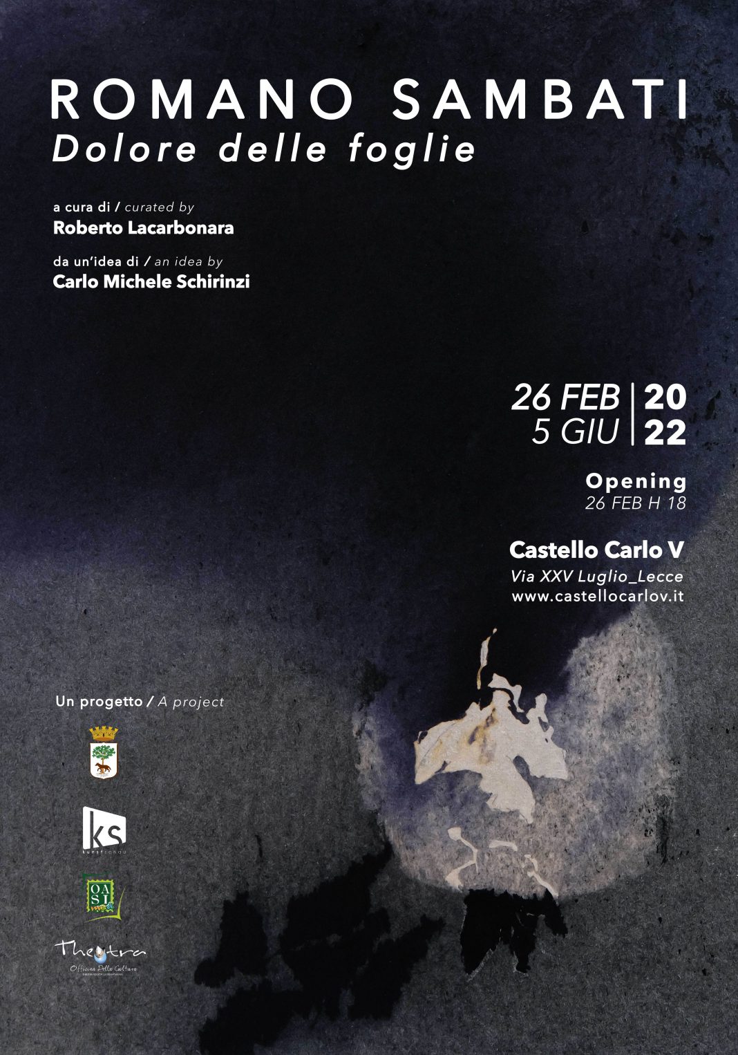 Sabato 26 febbraio 2022 alle ore 18.00, nelle sale del Castello Carlo V di Lecce, apre al pubblico Dolore delle foglie, mostra personale di ROMANO SAMBATI (Lequile, Le, 1938) dedicata alla recente produzione di uno dei massimi esponenti pugliesi della pittura e della scultura.