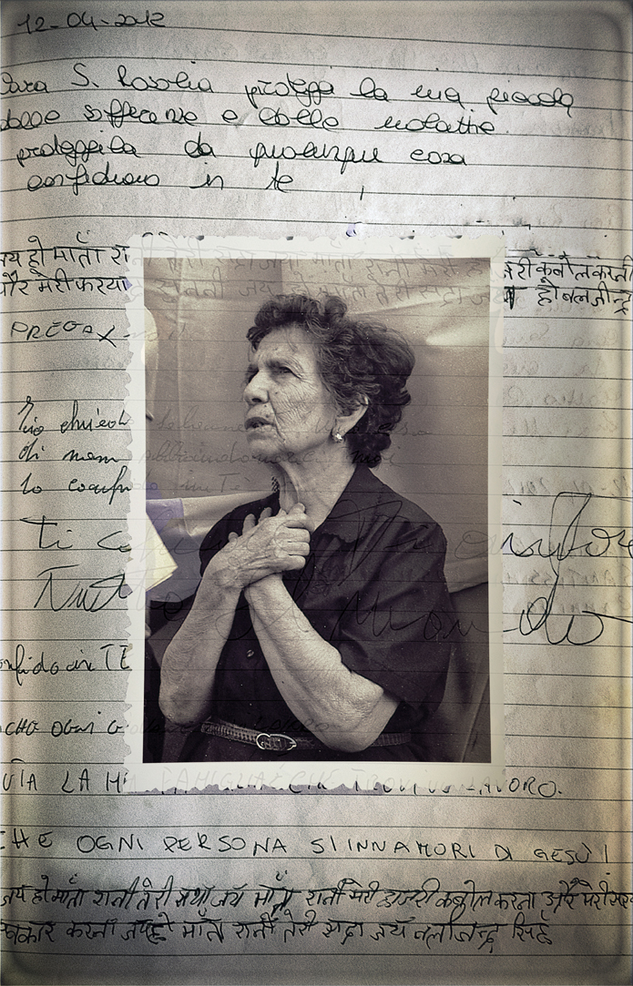 La fotografa sembra analizzare le parole scritte sui fogli lasciati all’interno del san-tuario e osserva gli ex-voto raccolti nella grotta della santa, cosicché, come scrive Rosario Perricone - “la fotografia diventa irrimediabilmente parte del corpus votivo documentato, se non essa stessa trasfigurata in una raccolta di ex voto, ove traspare l’esperienza trentennale presso il Santuario di Santa Rosalia vissuta sul corpo della fotografa, incrociando donne e uomini e immagini agglutinati nello spasmo delle devozioni.”