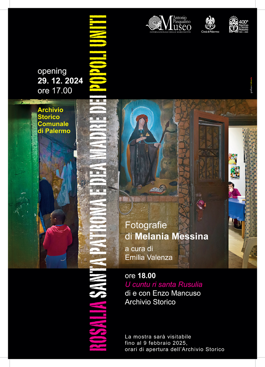 Rosalia: Santa patrona e dea madre dei popoli uniti è il titolo della mostra foto-grafica di Melania Messina, da un progetto a cura di Emilia Valenza e Rosario Perricone, che verrà inaugurata il prossimo 29 dicembre nella sede dell’Archivio Storico comunale di Palermo.
