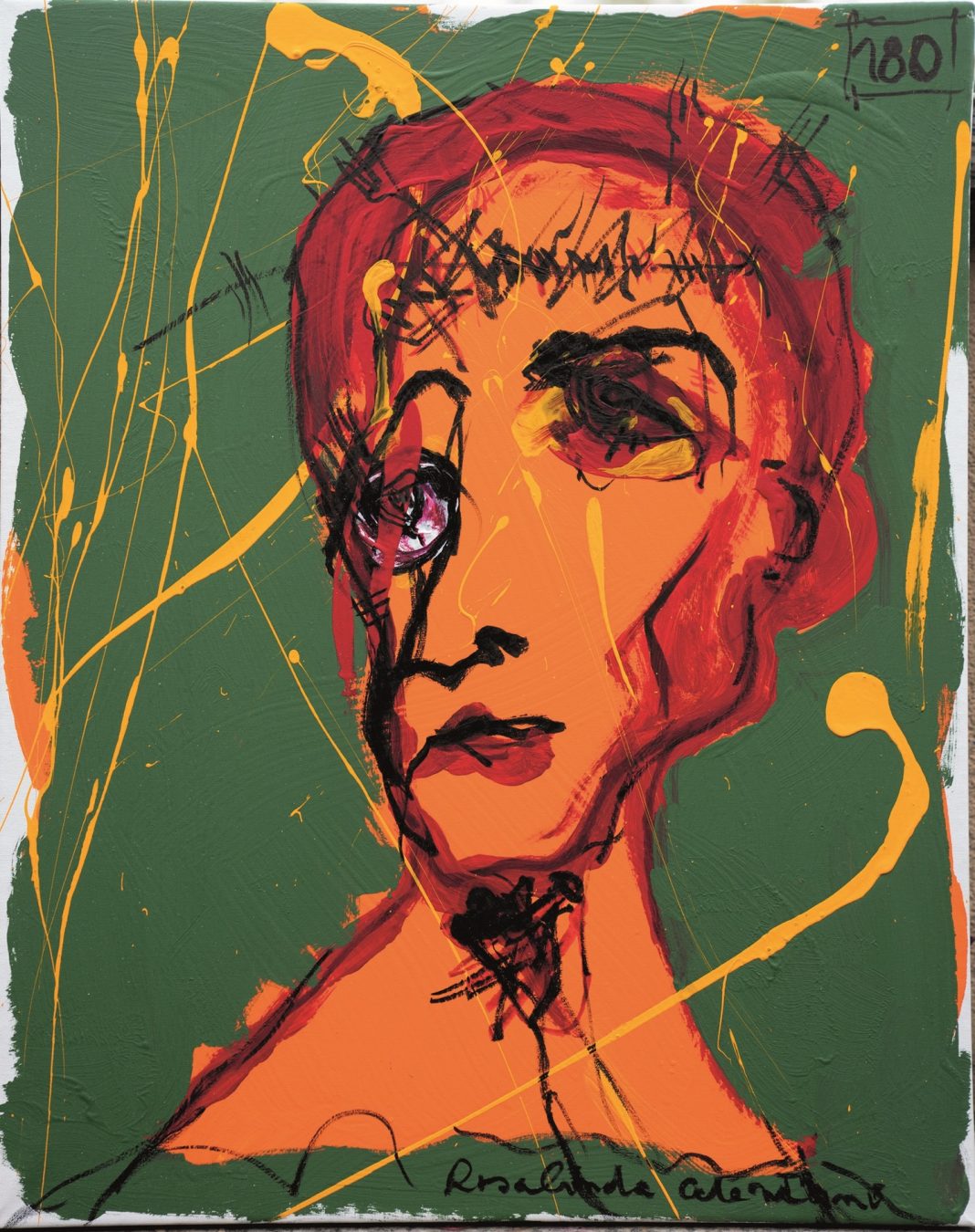 Non a caso, in molti lavori, specie i disegni, il tratto nervoso, a olio o carboncino che sia, delinea figure spaziali, angeli e mostri, ma allo stesso tempo è quasi sempre accompagnato da scritte, lapidarie citazioni o piccoli aforismi intorno al mondo e al genere umano, di cui, ora con ironia ora drammatizzando, Rosalinda sottolinea alcuni tratti salienti.