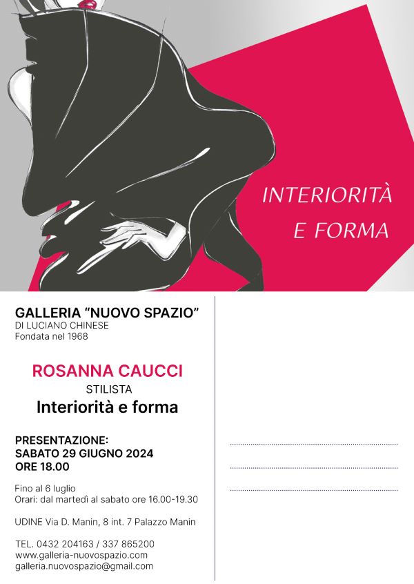 Questa volta Luciano Chinese, titolare della galleria “Nuovo Spazio”, ha deciso di esplorare un altro aspetto dell’arte contemporanea, presentando in una serata, nella sede di Udine, un incontro con una stilista, Rosanna Caucci.