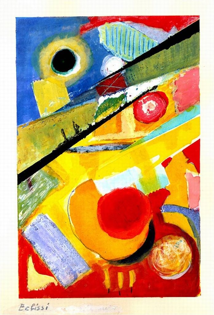 Tra le forme, nella pittura di Rosanna troviamo la morbidezza del Cerchio e dell’Ellisse...contrapposta alla rigidità del Quadrato...Tra i colori, l’allegra vitalità del Rosso, la malinconia del Blu, il dinamismo e il calore del Giallo e dell’Arancio...e poi... “ punto, linea superficie “....e la kandinskiana espressione dell’astrattismo....