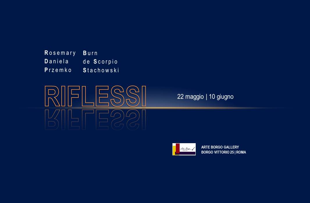 Riflessi è il titolo della mostra in cui tre artisti differenti per nazionalità e tecniche compositive si incontrano e si confrontano da sabato 22 maggio a giovedì 10 giugno 2021 presso lo spazio espositivo di Arte Borgo Gallery. Istanti di emozioni che si riflettono e vengono fissati sulla tela , questa la chiave di lettura della mostra in cui sono protagonisti Rosemary Burn, Daniela de Scorpio e Przemko Stachowski.