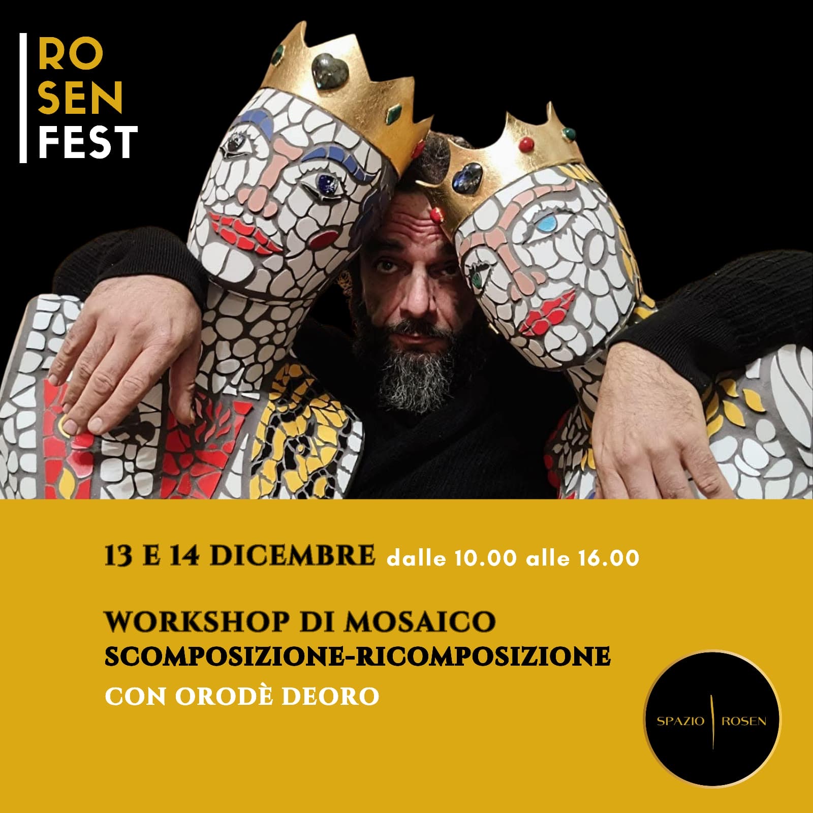 Spazio Rosen – Scuola di Teatro, Cinema e Laboratori d’arte, dedica due giorni alla ricerca artistica di Orodè Deoro, nella prima tappa del Rosen Fest, con esposizione e workshop di mosaico.