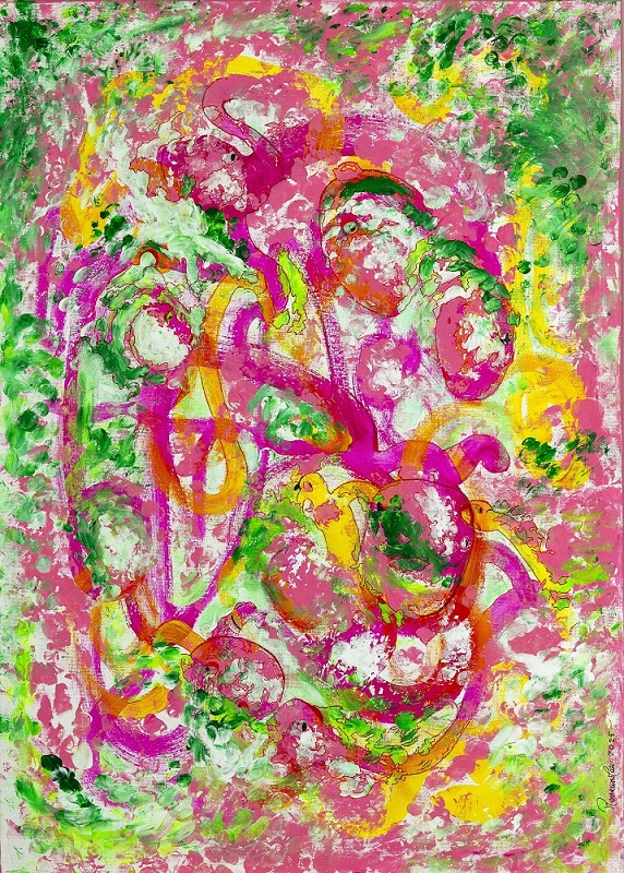 L’artista presenta per la prima volta al grande pubblico la sua produzione, circa 20 quelle in mostra tra formati imponenti e formati minori, tutte in acrilico su tela, che spaziano dall’astratto al figurativo, con una predilezione nell’utilizzo dei colori primari e dei toni caldi.