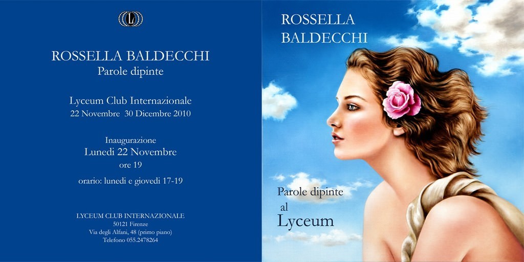 Dopo il recente successo della mostra in Germania Rossella Baldecchi espone al Lyceum Club Internazionale di Firenze. L’artista pistoiese ritorna a Firenze con le ultime opere del progetto itinerante “Parole dipinte”presentata dai critici Siliano Simoncini e Maurizio Tuci.