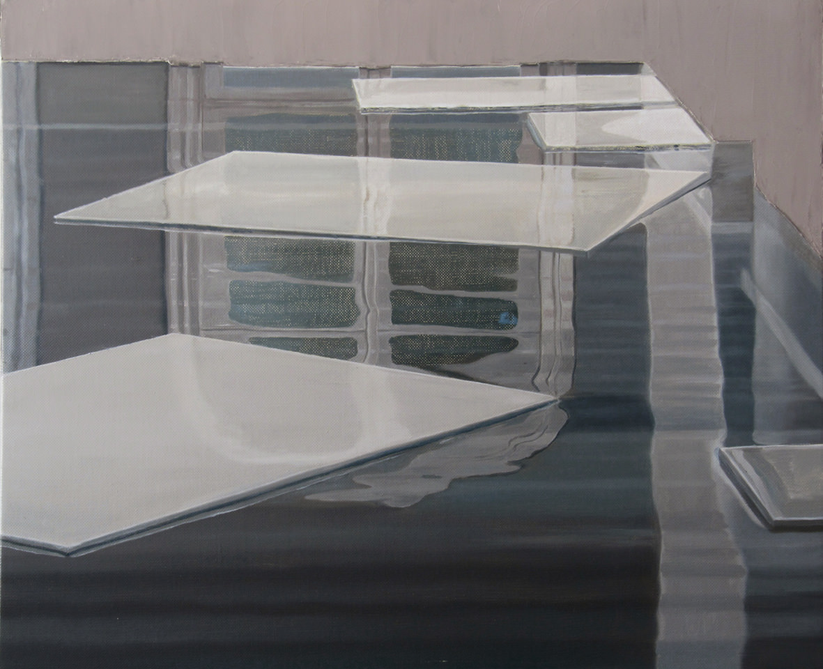 Nel lavoro di Francesco Cervelli l'elemento dell'acqua e dell'allagamento sono una costante. Nelle opere qui esposte l'acqua, non ancora defluita, lascia una sensazione di sospensione, di indeterminatezza, di vuoto, accentuata dalla campitura monocroma presente nella parte superiore della tela. Questo vuoto che lascia sgomenti parla della natura misteriosa della vita.