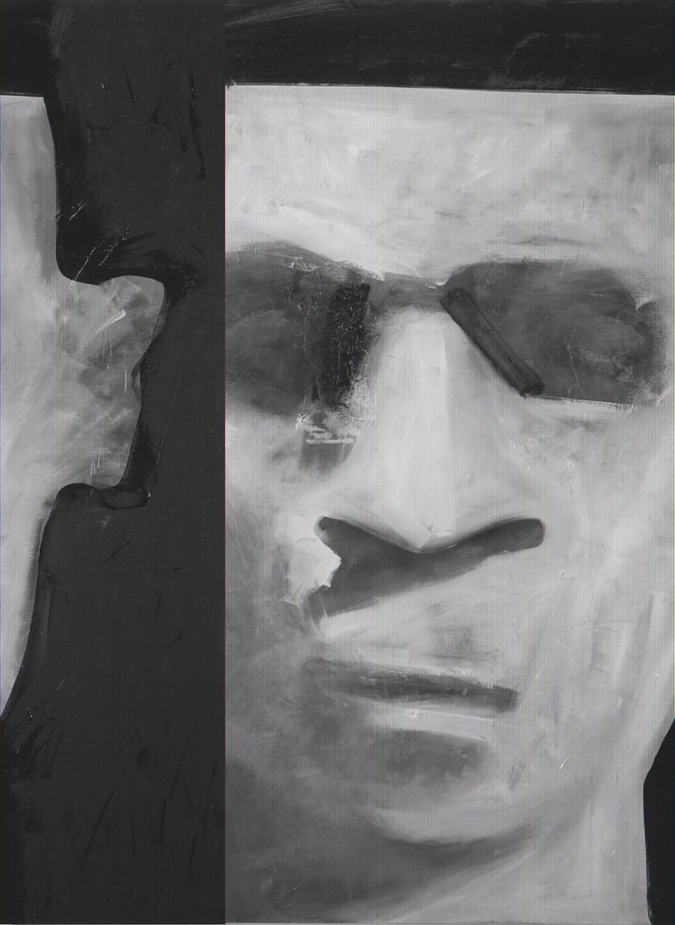 Va chiarito ancora una volta per tutte, a scanso di facili equivoci, che per carnismo nella pittura di RUB non si intende necessariamente la mimesis della carne, piuttosto il percepirne la vanità, tout court: le ombre come segno di un passaggio carnale, o (per i vegetariani) la bava di una lumaca, lasciata a delicato sfregio sopra il viso di un essere divenuto di sasso dentro il respiro del sonno ladro di un meriggio panico all’ombra di un carrubo. In questo senso, mi riferisco soprattutto al superbo incarnato blu piombo, o alla grafite di alcune teste-intratubo-orifizio, attraverso cui RUB rende una rinascimentale giustizia policromatica anche alle ombre; o alla ruggine ferrosa e alla biacca-cenere di splendidi maschere d’uomo e corpi in serie; o finanche agli stessi fondali-pareti dai colori primitivi medioevali e marcescenti, in cui si contengono teste e figure e riquadri di finestre-maschere a galleggiare fuori dal tempo, sospesi nell’universo amniotico del colore della pittura: tutto ritratto, non importa dove!