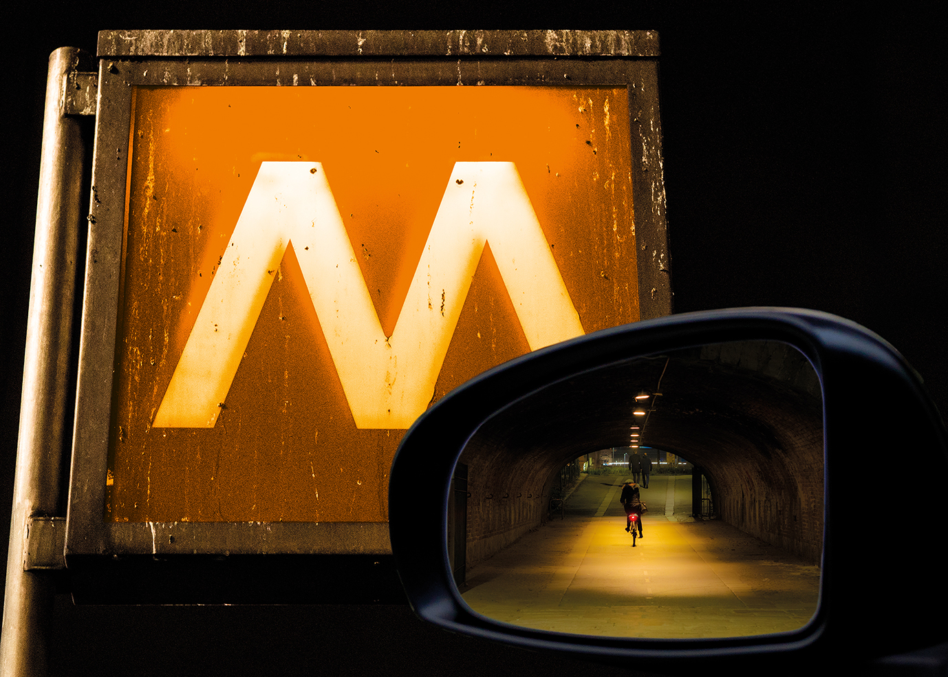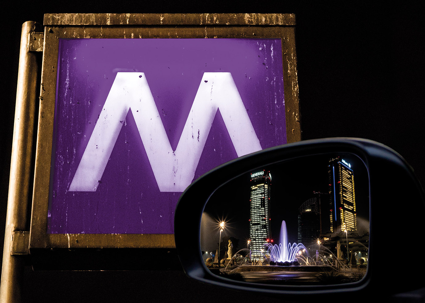 Milano. Nello specchietto c’è la storia e dietro un’immagine contemporanea della città, la EMME di