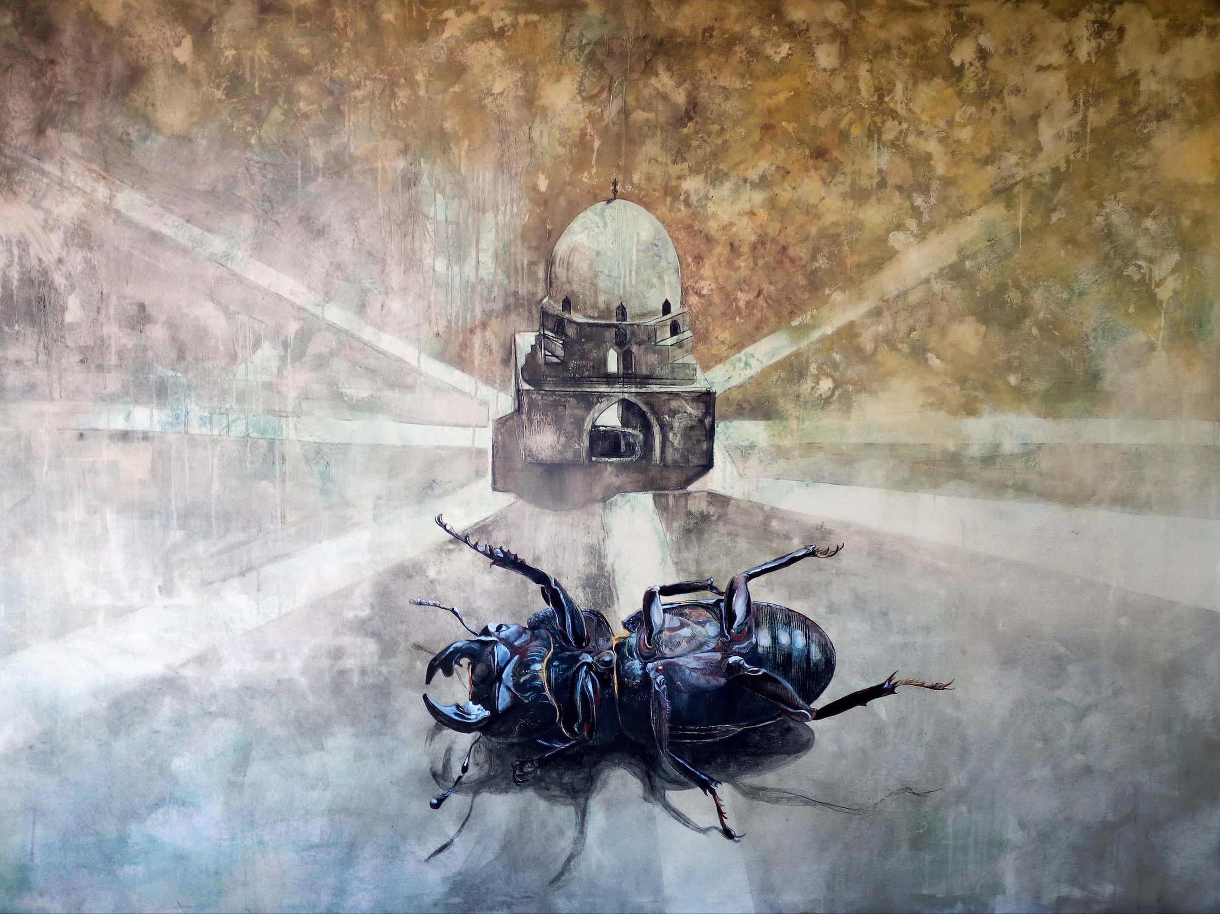 Gli scarabei di Facchin animano gli stessi spazi di frontiera che abita l’insonnia, luoghi enigmatici, densi di simbologie archetipe che stimolano riflessioni introspettive. Coesistono con essi strutture architettoniche ieratiche e tassellazioni con moduli decorativi arabeggianti che suggeriscono arcane allegorie. Attraverso queste rappresentazioni l’artista reclama il ritorno alla dimensione del gioco "serio" del bambino, quello che aderisce alla metafisica. Chi schernisce il linguaggio artistico, di fronte ad esso, si troverà in debito di ossigeno, non riuscirà ad immergersi nell'abisso di concentrazione necessaria ai giochi impegnativi. Allo stesso modo, chi sottovaluta e segrega la dimensione dell'inconscio e dell'istinto è destinato a non poter accedere ad una completezza umana che, di fronte alle sfide contemporanee, presto sarà indispensabile aver ritrovato.