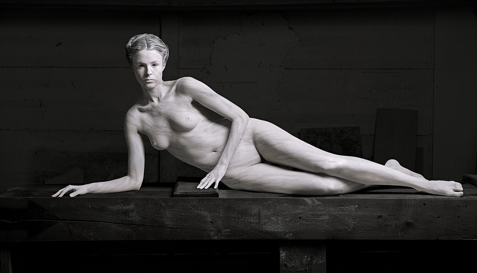 Il progetto “Renaissance”, che dà il titolo all’esposizione, si compone di 15 fotografie inedite a stampa giclée su carta baritata montata su dibond. Ideato dall’artista nel 2020, il lavoro è stato portato a termine nel 2022 negli spazi della Cooperativa scultori di Carrara. Attraverso una sequenza di immagini, una modella/attrice disegna e scolpisce il proprio corpo in un blocco di marmo fino ad amalgamarsi essa stessa con la materia, in una moltitudine di raffigurazioni legate all’antico femmineo e orientate al divenire.