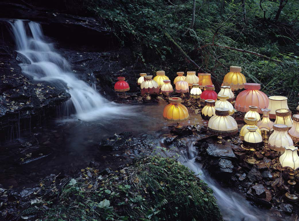 Il contesto naturale, infatti, svolge un ruolo duplice: si configura al tempo stesso come protagonista e cornice delle installazioni. Nel silenzio rarefatto della natura norvegese, Guneriussen dispone lampade, libri, telefoni, seggiole, che metaforicamente risuonano come amplificate da un’eco, come spiega l’artista. Il processo si conclude con lo scatto fotografico dell’installazione, che viene realizzato in analogico, senza ritocco digitale in fase di post produzione. L’effetto finale è un affascinante connubio tra natura e oggetti, dove questi ultimi dominano la scena, diventano immutabili come gli elementi della natura circostante, trasformano il paesaggio ma nello stesso tempo lo rispettano.