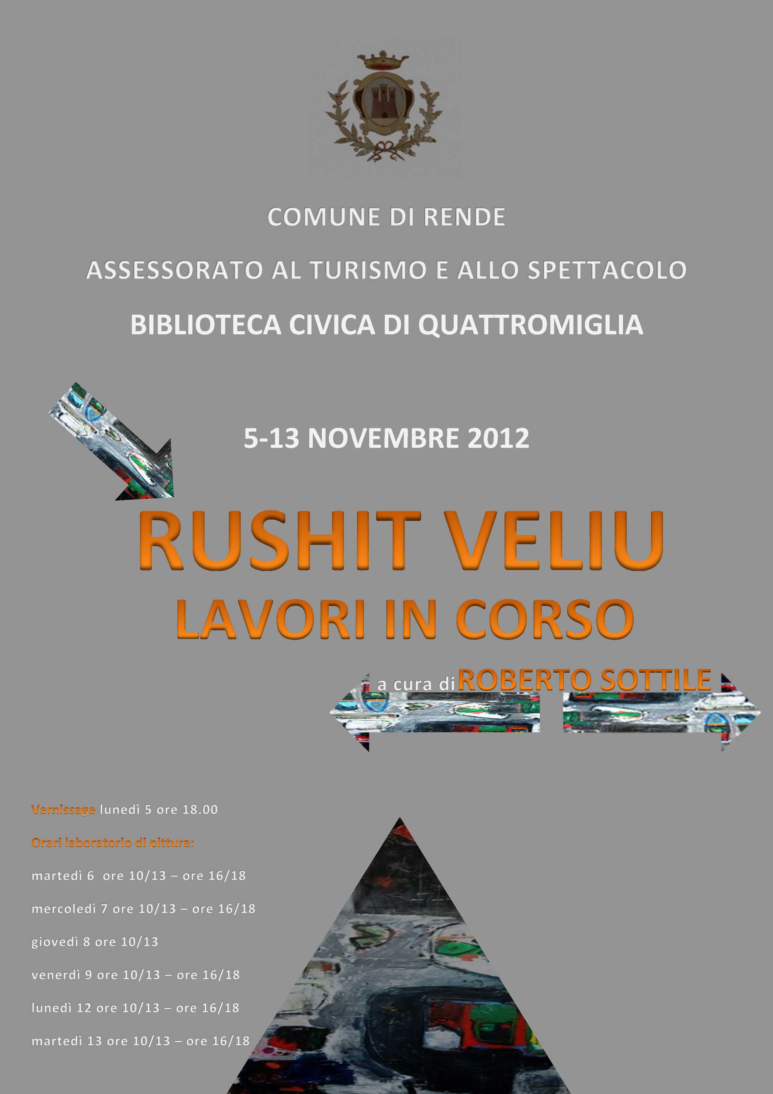 Rushit Veliu,artista Kosovaro, si cimenta in un laboratorio di pittura aperto al pubblico. Una delle opere realizzate verrà sorteggiata tra i visitatori del laboratorio.