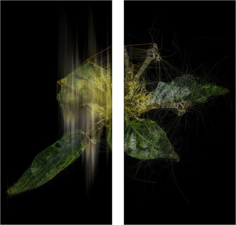Ne costituisce un esempio la serie elementum (2018): fiori essiccati e pressati che hanno perso la loro bellezza originale sono riassemblati dall’artista e arricchiti da un intervento su vetro creato attraverso un processo di elaborazione digitale dell’immagine che sembra collegare i vari frammenti e dare al fiore nuova vita valorizzandone il processo di decadenza. In maniera analoga le grafiche astratte della serie lttrans (2018), e le sculture appartenenti alla serie renature::bc-class (2015) possono essere percepite come immagini di fiori e insetti, ma, avvicinandosi gradualmente, si rivelano un insieme di filamenti e particelle: si tratta quindi di una rappresentazione digitale del vero in cui viene reso visibile il processo di ricostruzione, esattamente come avviene nel Kintsugi.