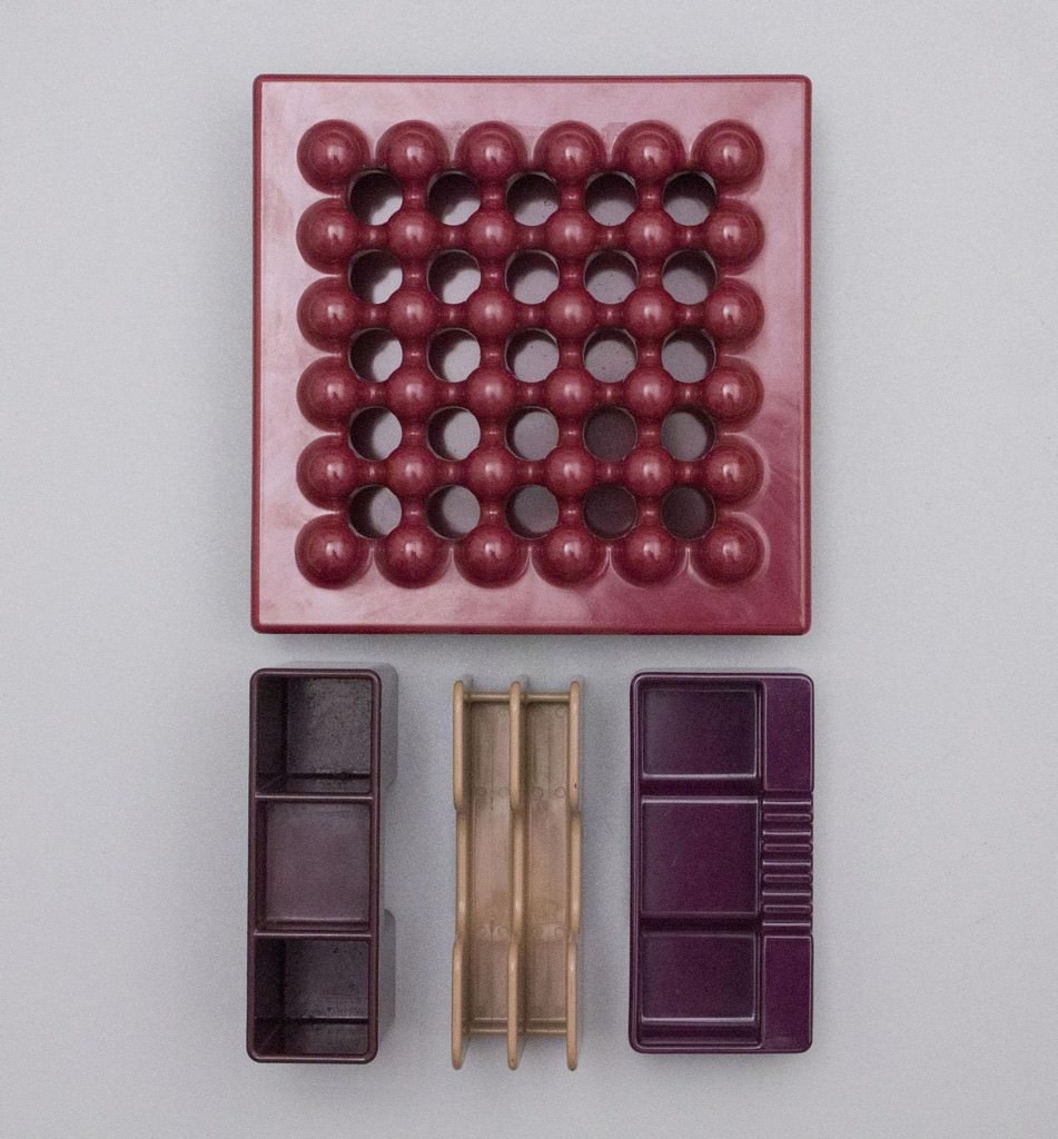 Sessanta le opere in mostra, tra cui arredi e documenti originali, inediti o poco conosciuti: scrivanie, sedie, pareti componibili, cassettiere, raccoglitori verticali, classificatori e accessori come attaccapanni, portaombrelli, cestini, posacenere, portapenne, temperamatite e supporti per il telefono, prodotti negli stabilimenti Olivetti Synthesis di Massa Carrara per comporre un arredo dell’ufficio come non si era mai visto prima. Arricchiranno l’esposizione una serie di fotografie degli uffici di un giovane Gabriele Basilico (1972) e il film industriale Olivetti Synthesis serie 45/80 in cui lo stesso Sottsass è attore.