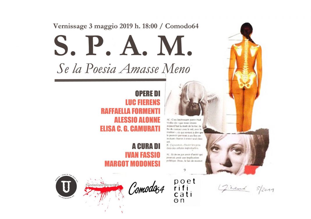 In occasione del festival di urbanesimo e nuova poesia Poetrification _urbanismo inverso_ venerdì 3 maggio alle ore 18:00 presso il Comodo 64 di Torino in via Bologna 92 si inaugura S.P.A.M. – Luc Fierens, Raffaella Formenti, Elisa Camurati.