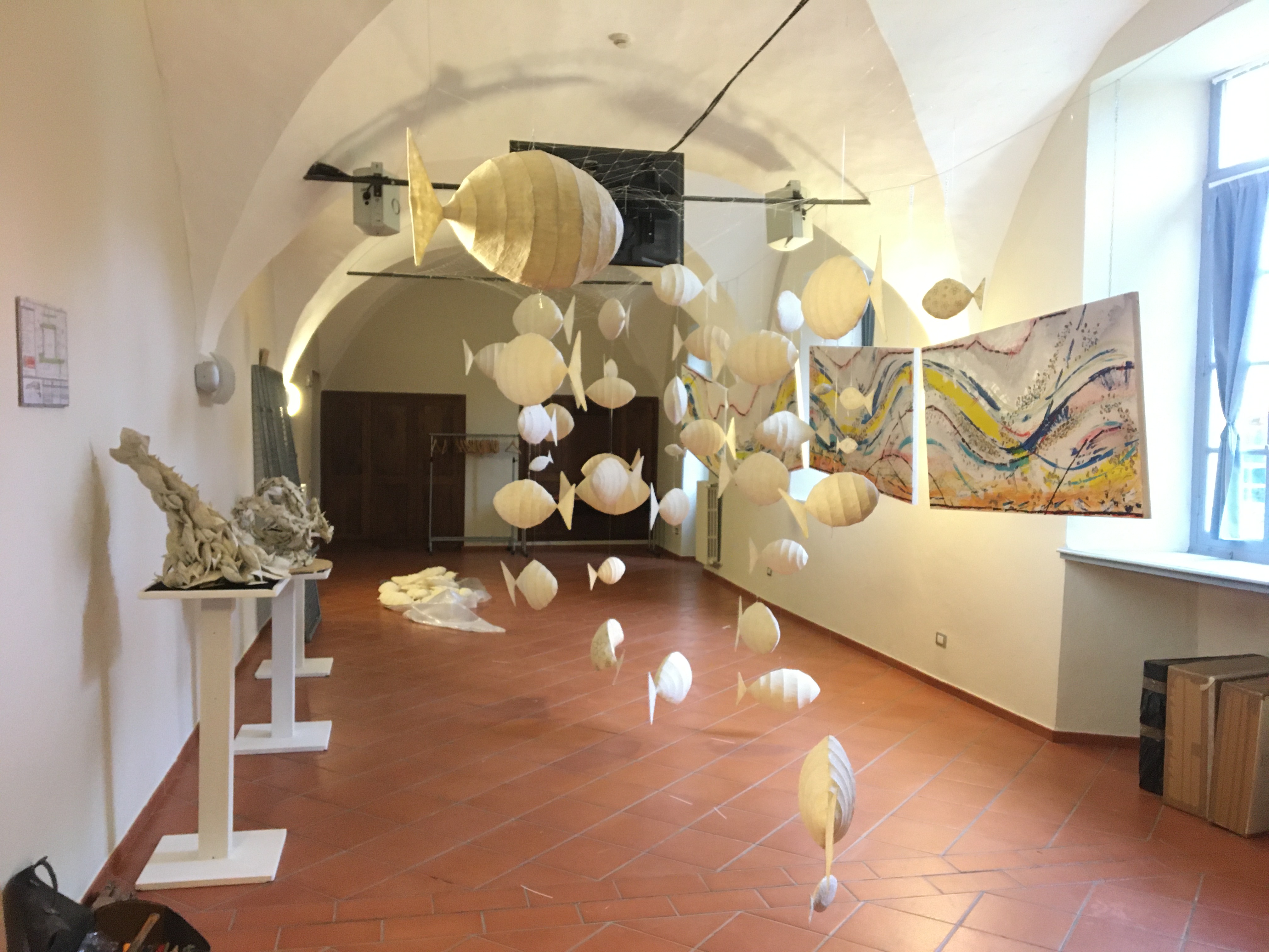 In questa istallazione la Sala delle Arti, spazio espositivo all’interno della Certosa Reale di Collegno, diventerà una sorta di acquario dove immergersi in sculture, quadri, disegni che illustrano il periodo ormai più che decennale di ricerca spirituale dei coniugi/artisti.