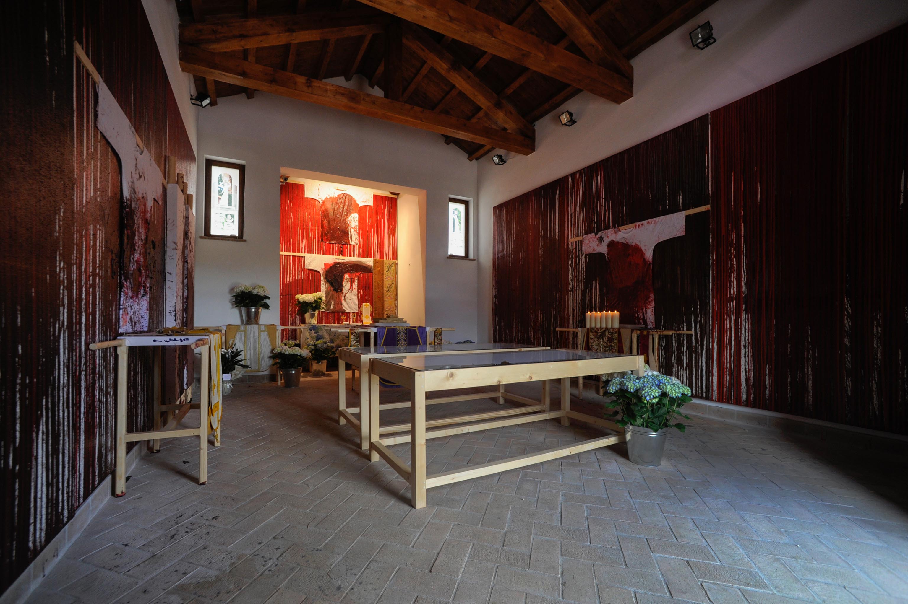 - Cappella Nitsch (Nitsch Chapel): Nestled in the woods, a small chapel conceived with the approval of Hermann Nitsch, a prominent figure of Viennese Actionism. The Austrian artist offered his complete availability for the installation of this space with site-specific works and installations, bringing to Sabina the dramatic intensity and the concept of "total theater" that characterize his art. The Nitsch Chapel represents a unique opportunity to connect with the vision of a world-renowned master.