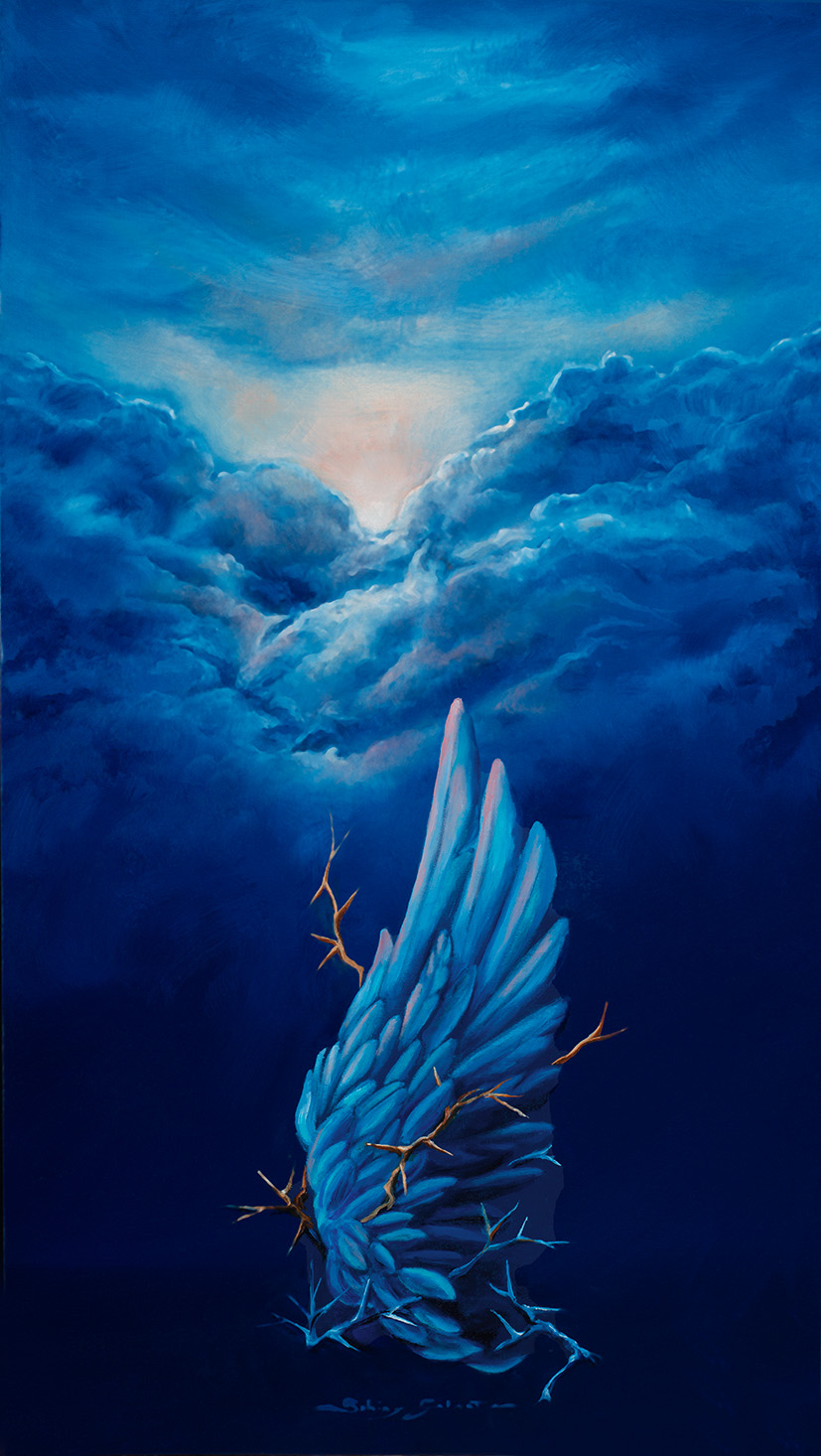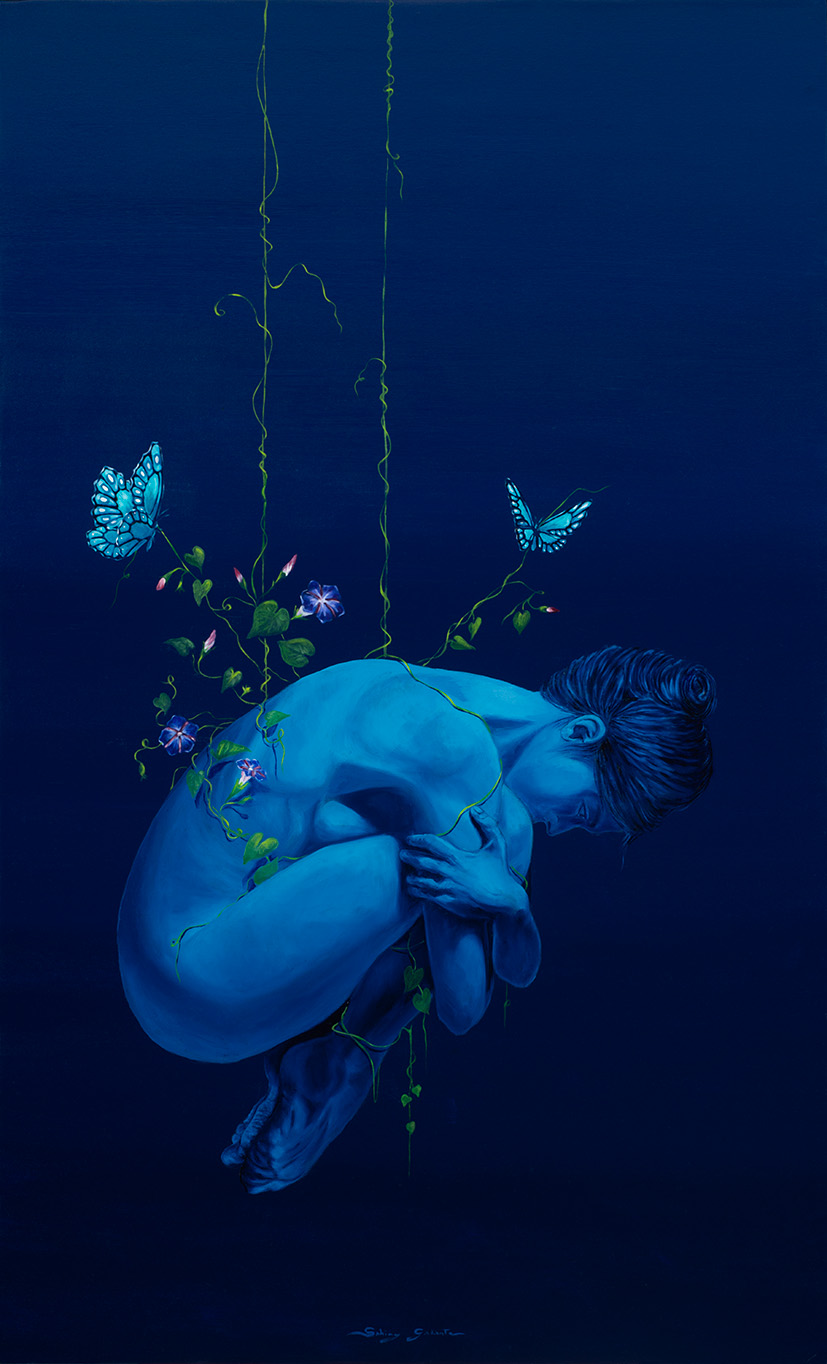 Se in Vanitas abbiamo assistito alla caduta del mito, al crollo dell’invincibilità che deve piegarsi all’umanità, in Veritas la pietra si è completamente trasmutata in carne tormentata. Una delle sofferenze, forse la più sentita, è quella del limite invalicabile tra la sfera femminile e quella maschile che si deve scontrare con le aspettative e le pretese della società, i desideri e la libertà del singolo. È forse proprio questo anelito di libertà che spinge Galante a donare alle sue figure ali vitali, pronte a spiccare il volo, ma talvolta costrette a terra da spine acute. Si osserva dunque una sorta di ambivalenza della natura, che, quasi violenta con la sua forza dirompente e capace di sgretolare la pietra, dona ai corpi la vita e un cuore pulsante, carico di aspettativa e sogni. Le tele di Galante invitano lo spettatore a partecipare a una danza pudica e sensuale, in grado di far emergere dal confronto con queste figure maschili e femminee le parti più recondite della nostra coscienza, fino a giungere, passando attraverso le difficoltà, alla Verità assoluta.