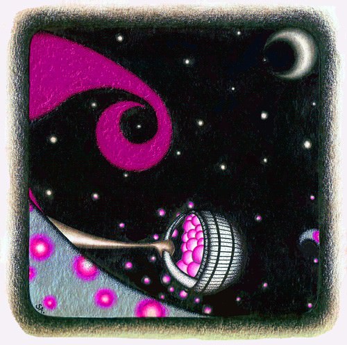 Racconti di immagini di cavalieri e di dame, di maghi e di streghe, di amore e di odio, di dolce tristezza e di disperata felicità. Nei suoi dipinti ascolti musica, scorgi i colori delle note, le sfumature delle liriche più struggenti.Le suggestione sono infinite, ma il punto di vista su questo mondo surrealista è unico e attento, come unico e attento è l'occhio dei suoi personaggi, che solo in alcuni casi, si concedono il lusso del secondo sguardo come un secondo punto di vista mai chiuso, mai limitato. C'è tutto il senso della fantasia delle fiabe, le atmosfere poetiche degli stati d'animo più profondi, la ricerca della purezza nella precisione e la linearità delle forme, una "architetto della poesia e della creatività".