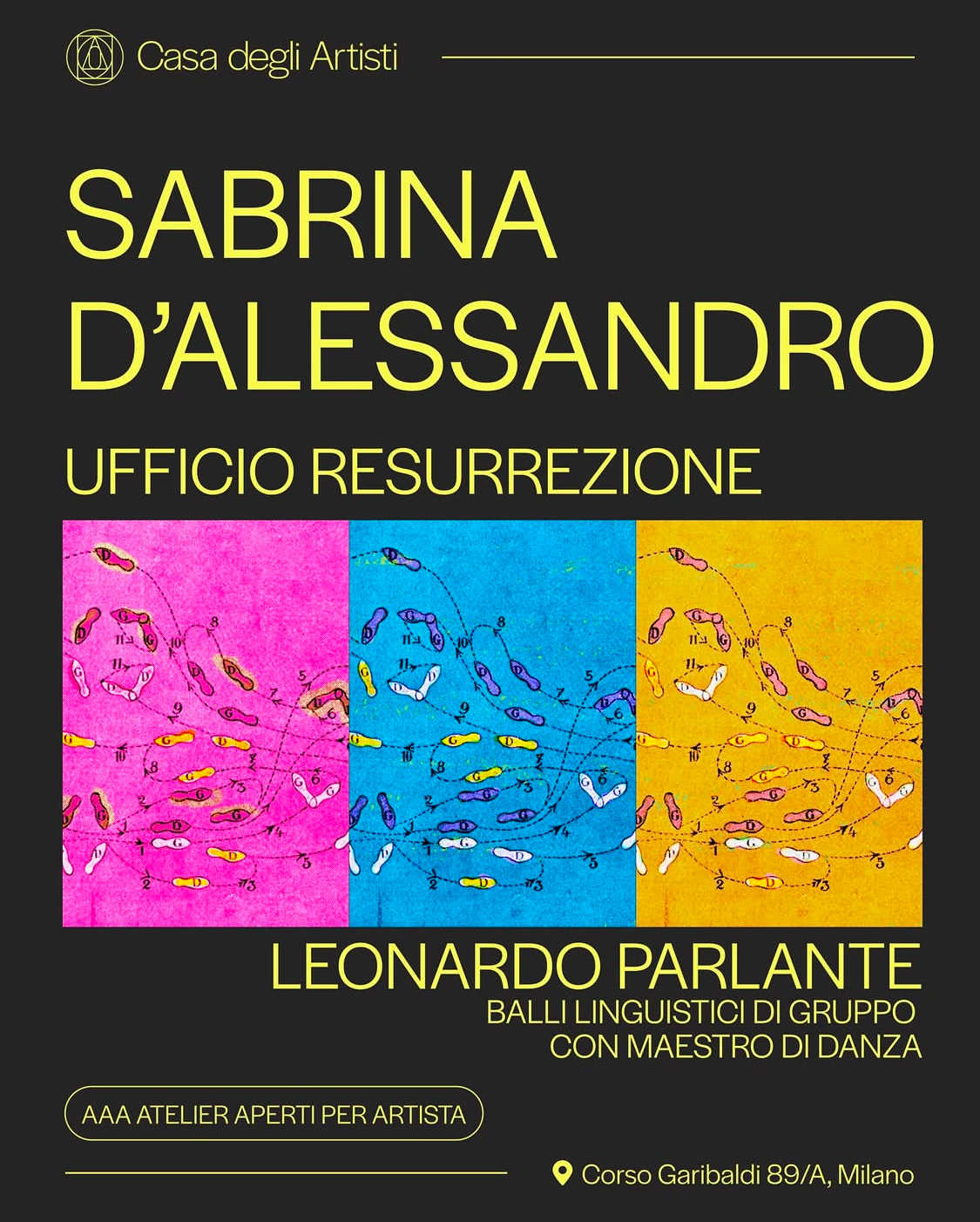 Nell’attesa, “per ridare vita e gambe alle parole di Leonardo” l’Ufficio Resurrezione invita il pubblico a una serie di “lezioni di ballo linguistico - rigorosamente di gruppo - in cui le parole ballano e il corpo parla”.