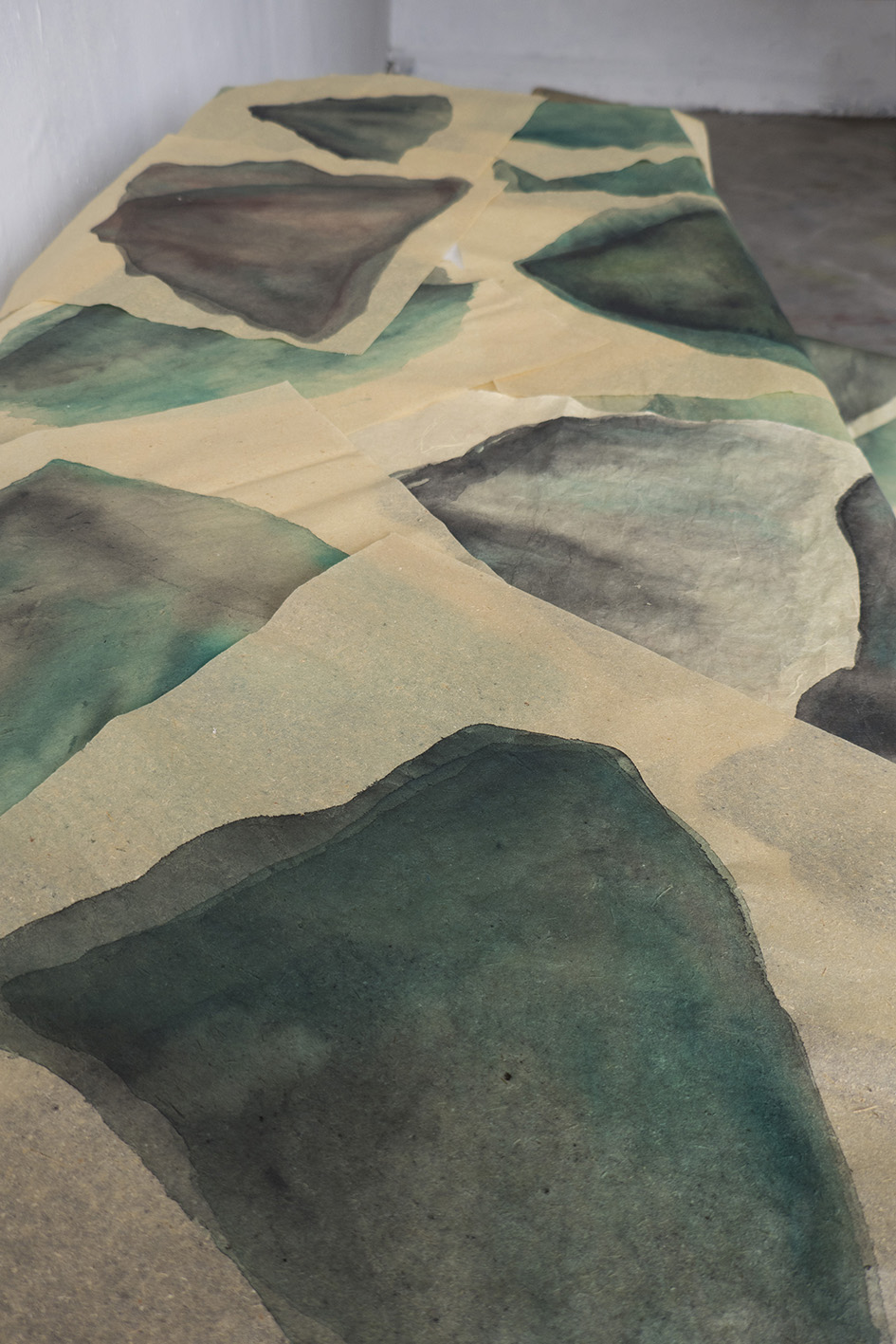 “Si tratta di un progetto realizzato durante una residenza in un piccolo villaggio cinese ai piedi della Grande Muraglia e presentato durante l’Artweek bolognese - spiega la curatrice - che qui si presenta in una nuova veste”. Oggetto del lavoro della Muzi è la montagna (Shān in cinese), dipinta ad acquerello su lunghi fogli verticali di carta di riso e su sottili carte cinesi, le cui stratificazioni seriali e le trasparenze restituiscono un luogo di sovrapposizioni temporali e spaziali.