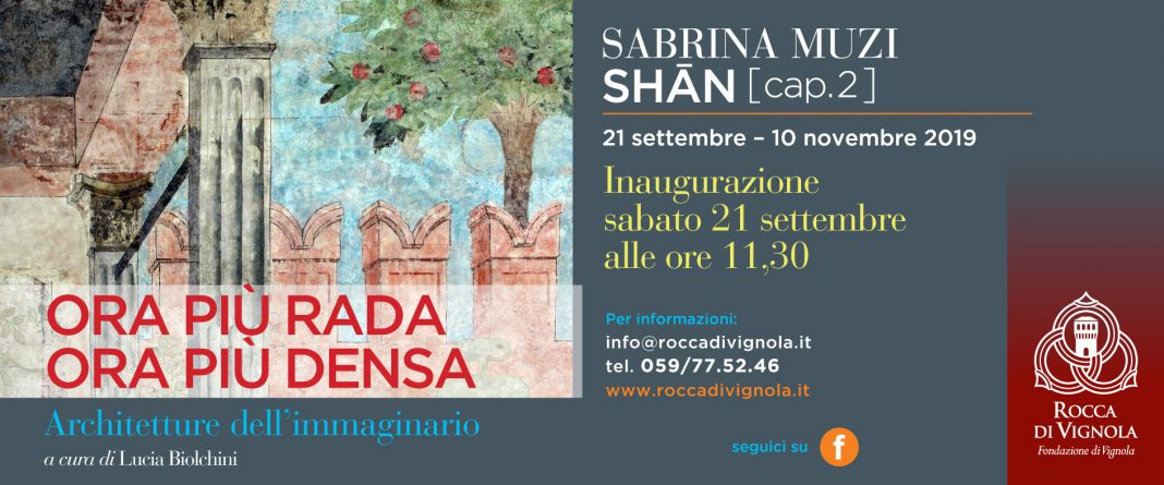 Il secondo appuntamento di "Ora più rada Ora più densa. Architetture dell'immaginario", la rassegna di arte contemporanea a cura di Lucia Biolchini realizzata dalla Fondazione di Vignola tra le mura della maestosa Rocca di Vignola, è l'intervento di Sabrina Muzi SHĀN [cap. 2], a partire da sabato 21 settembre alle ore 11.30.