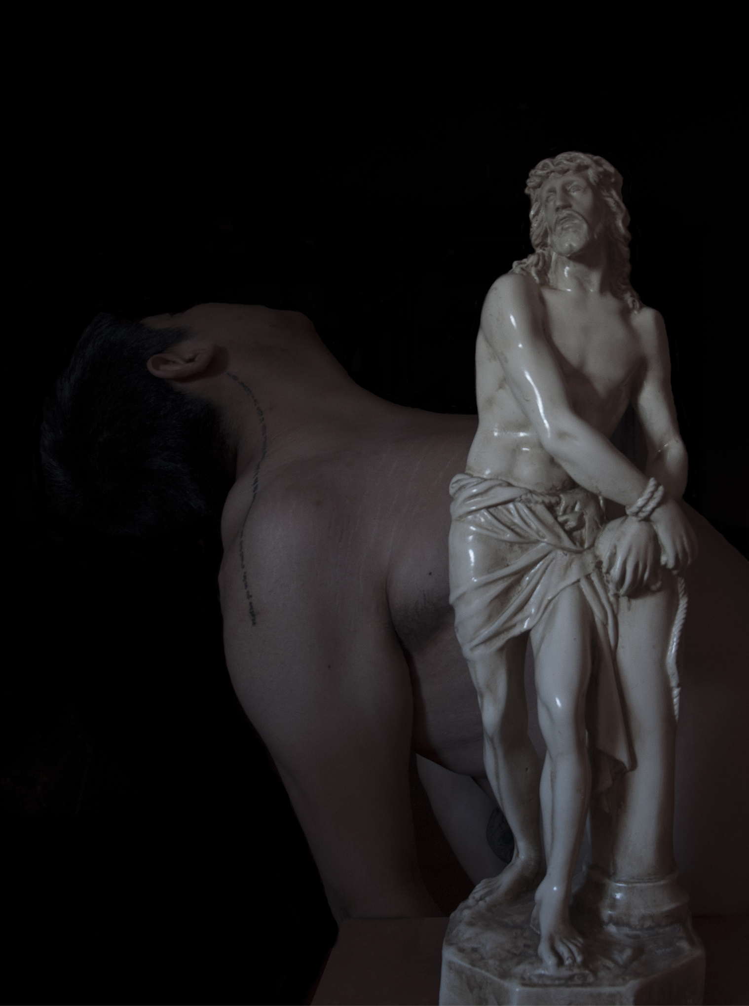 Sedici opere di grande formato si interfacciano con il contesto e con la sua identità di luogo sacro aprendo un interscambio vivo e mai retorico. In uno spazio denso di memoria, pervaso da un candore spettacolare, la magnificenza delle curve barocche trova contrappunto e risonanza in un’inedita estetica contemporanea, brillante e carica di potenziali significanti. Sono opere che riscrivono l'idea di sacro, “un sacro non solamente religioso ma politico, intimo, sociale, ambientale, un sacro che possa ridefinire una linea di valore da seguire, un sacro dalle mille verità, raccontato da direzioni culturali diverse, da uomini normali quali sono gli artisti” (Adalberto Abbate).