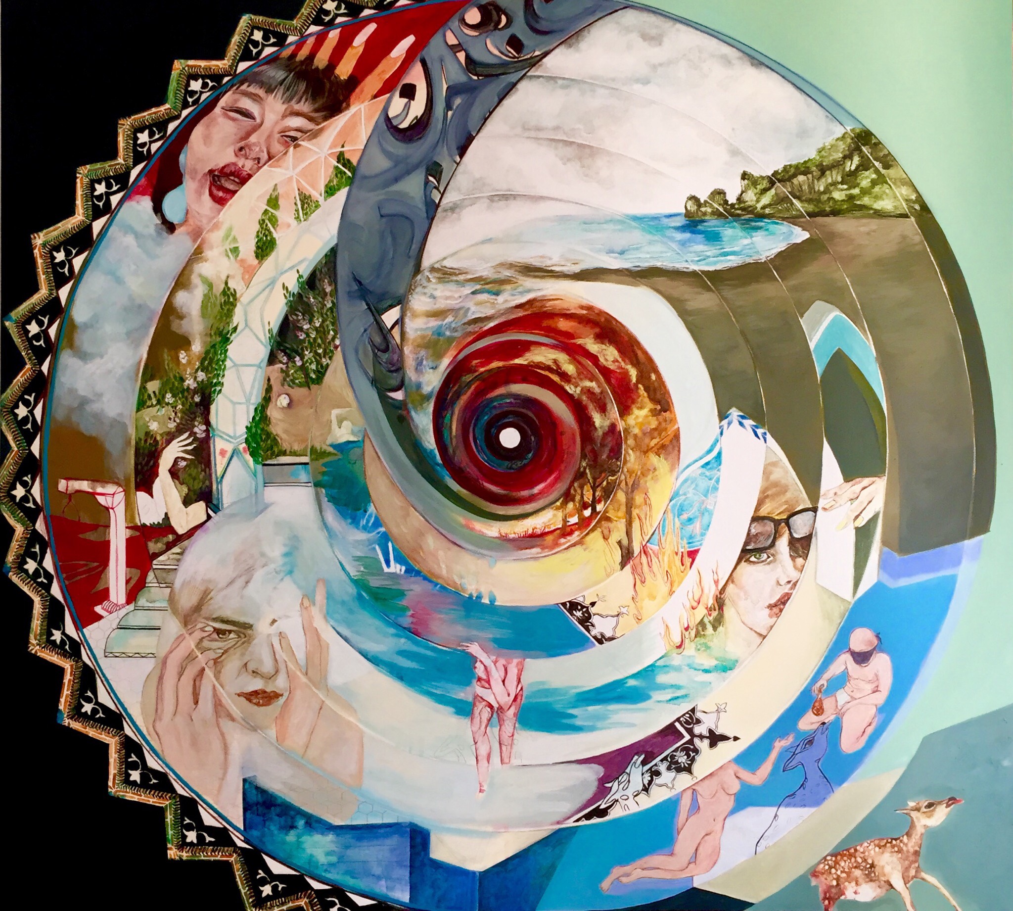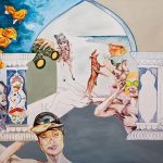 Gli eventi rendono impossibile aprire fisicamente in galleria la mostra, posticipata fino al giorno della riapertura, ma dal 24 aprile viene presentata una sua anteprima su Artland. La serie di Saghar Daeiri “Swallow - Kiss - Burn”, presentata su Artland, si concentra sulla mitologia mediorientale e sulle immagini archetipiche. Le scene sono ambientate in un giardino persiano, metafora del paradiso terrestre, in cui creature non umane si vestono con abiti non convenzionali ed hanno corpi cadenti, sovrappeso e invecchiati, lontani dalle immagini di bellezza popolare e commerciale. La deformazione fisica stride con il colore acceso e brillante e l’abilità grafica con cui sono resi i dipinti.