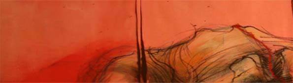 Uno snodarsi di forme-umane e animali-in uno spazio e in un tempo che non ha contorni, infinito che non ci contiene,non ci abbraccia,spesso ci schiaccia e toglie aria lentamente