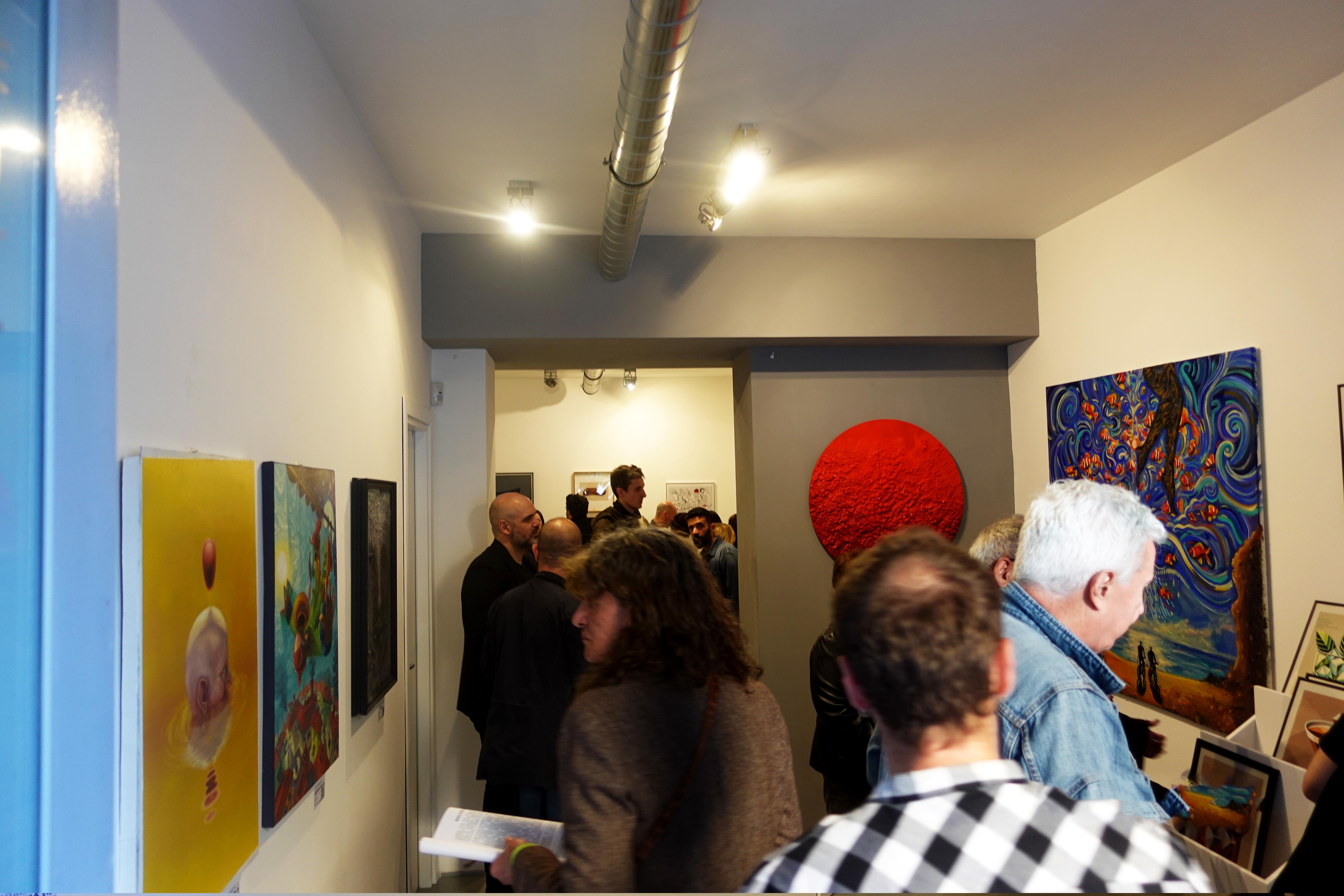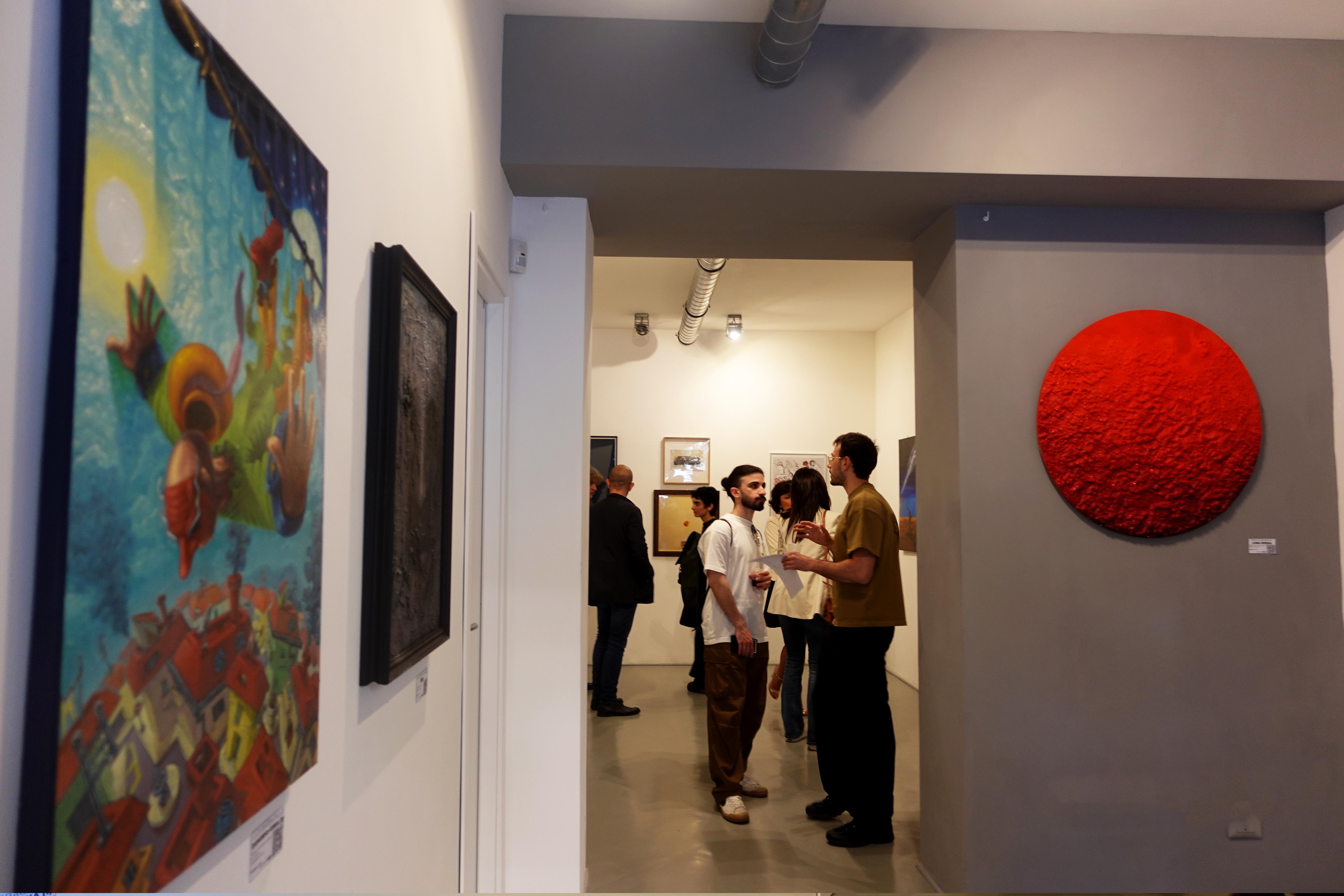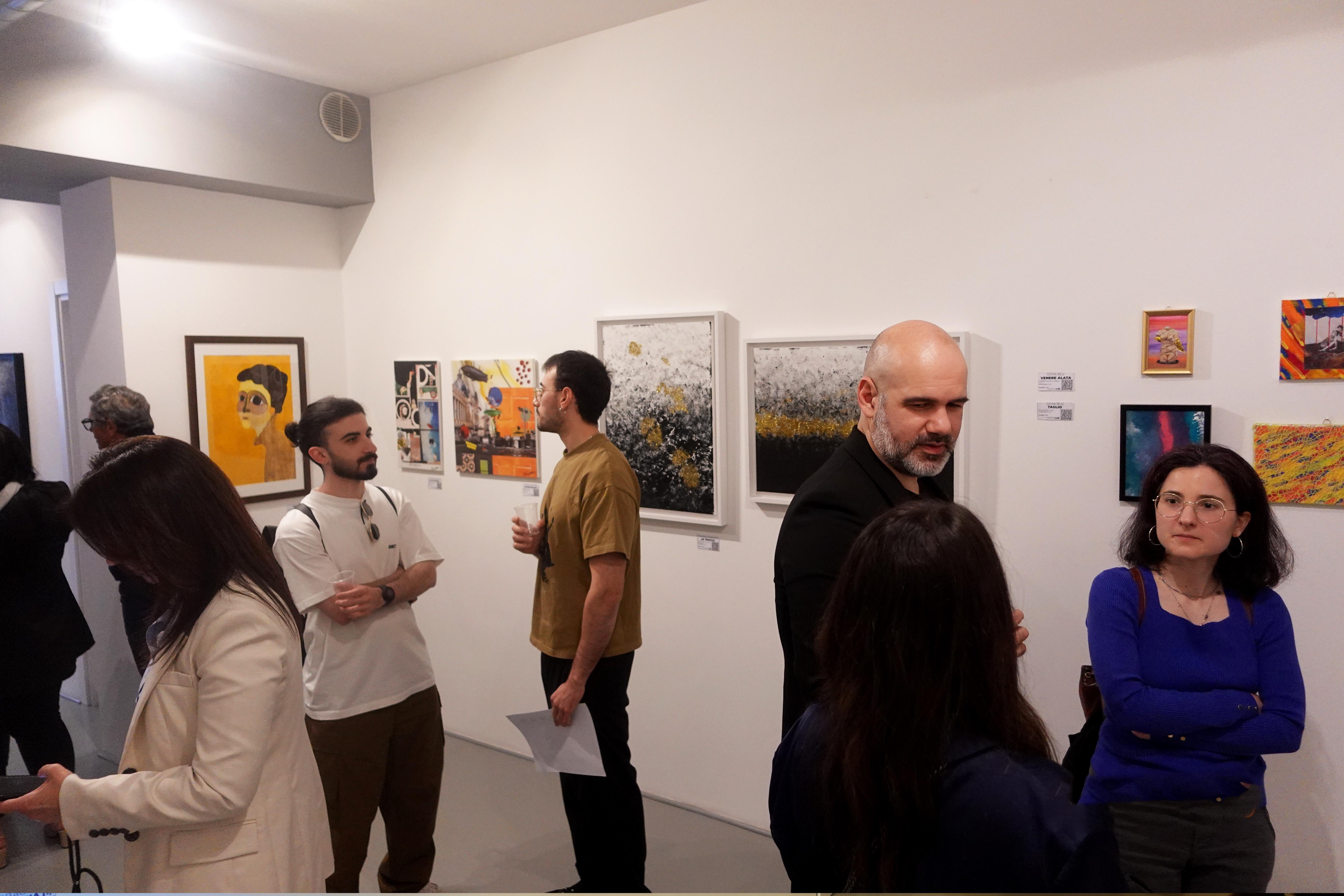 C’è l’astrazione evocativa e cromatica di Davide De Luca, che trasforma la pittura in campo di sogno e pareidolia; la leggerezza meditativa di Anna Barone, che esplora la trasparenza dell’acqua come forma di ascolto; la dicotomia uomo-macchina di Alessandro Del Gaudio, che fonde ferita, pane e metallo in un’estetica affettiva; la materia esplosa di Mirko Gessaga, che destabilizza e incanta come un colpo di scena controllato; il lirismo metropolitano di Alberto Lovisi, che fonde rock, jazz e nostalgia in una figurazione ritmata; il disegno narrativo e ironico di Barbara Meduri, che unisce architettura e fiaba in mappe immaginarie; l’universo manga e la delicatezza del tema dell’autismo nelle opere di Silvia De Angelis, che racconta con affetto e autenticità; il tratto vibrante di Raffaella Chiodino, che torna alla pittura come risveglio creativo e personale; le tavole vissute di Milko Scontra, che scolpisce sul legno la vita e la donna come essenza divina; le visioni archetipiche e simboliche di Cristina Crestani, che attinge all’inconscio per costruire una pittura intima; il colore manifesto di Rosa D’Angelo, che lavora su identità, potenza e denuncia con energia cromatica; l’estetica urbana e pop di Edoardo De Liso, che ibrida Warhol, strada e icone in una sintesi visiva diretta e immediata.