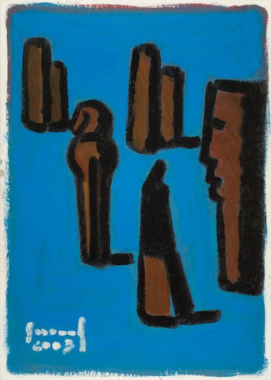 Le 52 opere in mostra sono realizzate dall’artista tra il 2001 e il 2004 con la tecnica dello smalto su cartoncino.