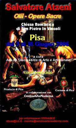 Da sempre la sfera del sacro è rifugio per la crisi dell’esistenza. Le amarezze, le contrarietà, le ingiustizie sofferte nel vivere quotidiano vengono interiorizzate ed idealmente trasfigurate nelle vicende archetipe offerte a modello dalla nostra vita. Quindi per Atzeni il rapporto con l’umanità trascende il contingente per configurarsi nell’assoluto. E’ sintomatico questo ancestrale recupero del passato, rilanciato sul presente. Ed una conferma è nelle sue scelte di musica barocca, come rapporto per i suoi concerti di solista di chitarra. Salvatore, infatti, alterna la musica ala pittura e coltiva con uno stesso rigore entrambe le discipline. … Ma in ogni caso credo che la libertà di espressione al di sopra di ogni condizionamento storico, e che il linguaggio tradizionale abbia ancora una pienezza di validità. D’altra parte Atzeni, per la sua stessa confessione, crede fermamente che chi si è nutrito per anni del patrimonio d’arte più prestigioso del passato non potrà accettare deviazioni e deformazioni, imposte dalle correnti d'avanguardia. (prof. Sabino Iusco).
