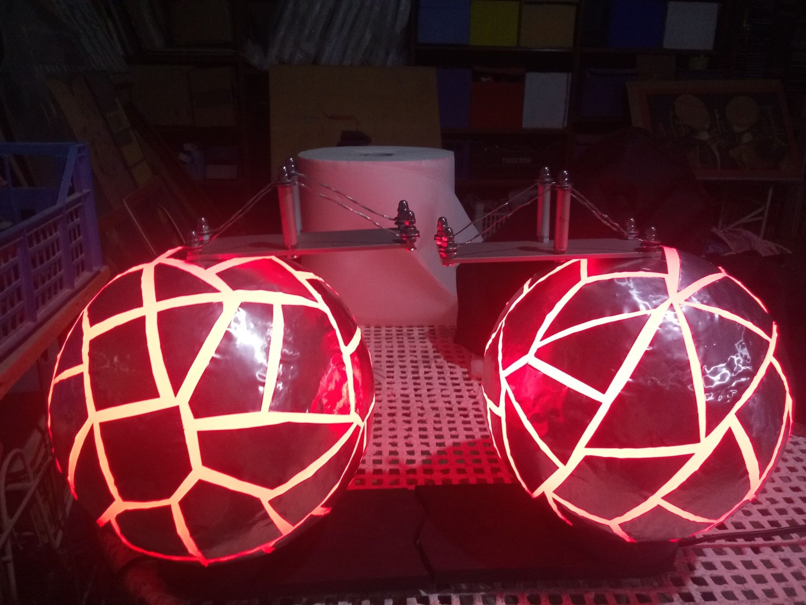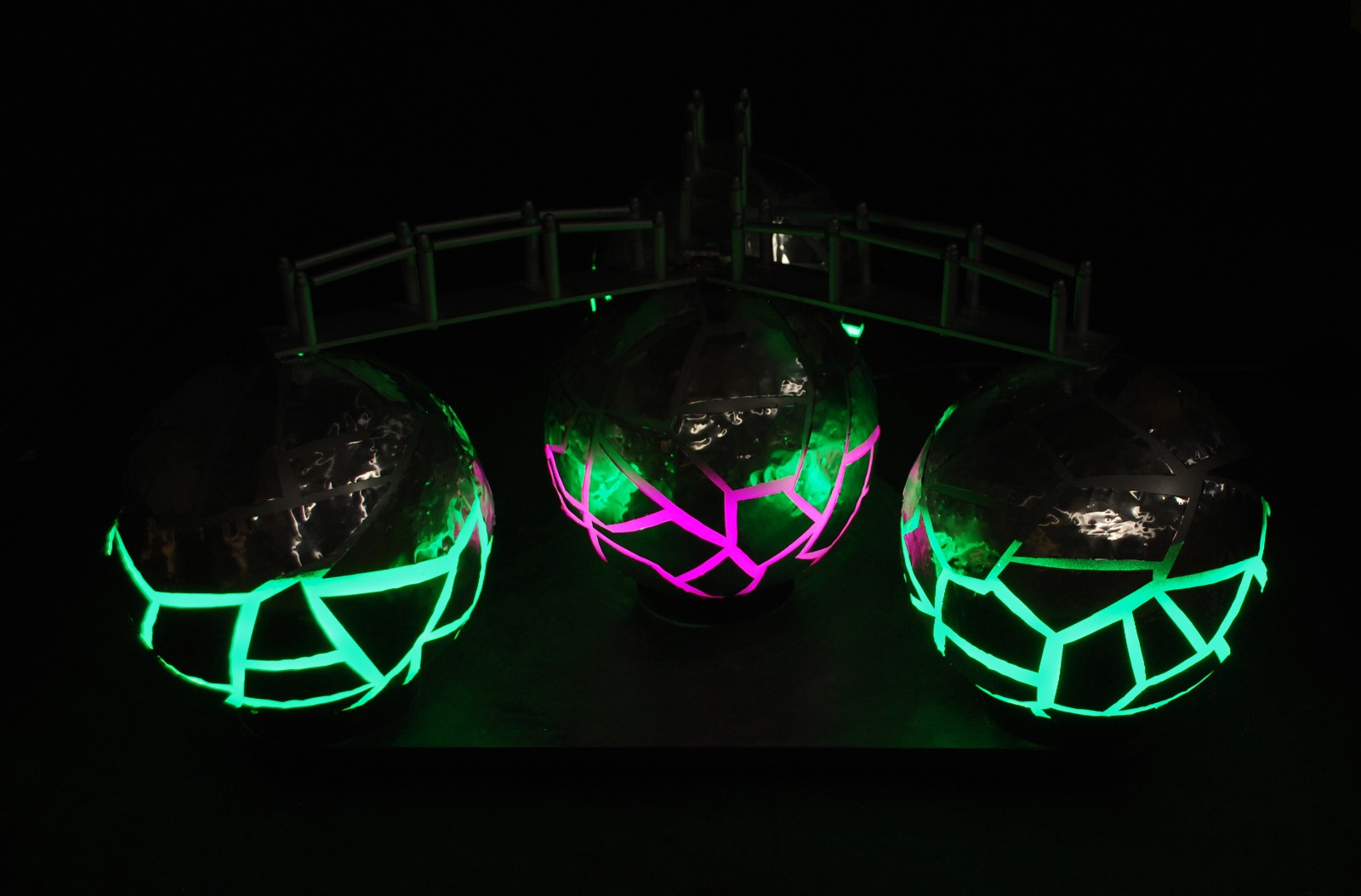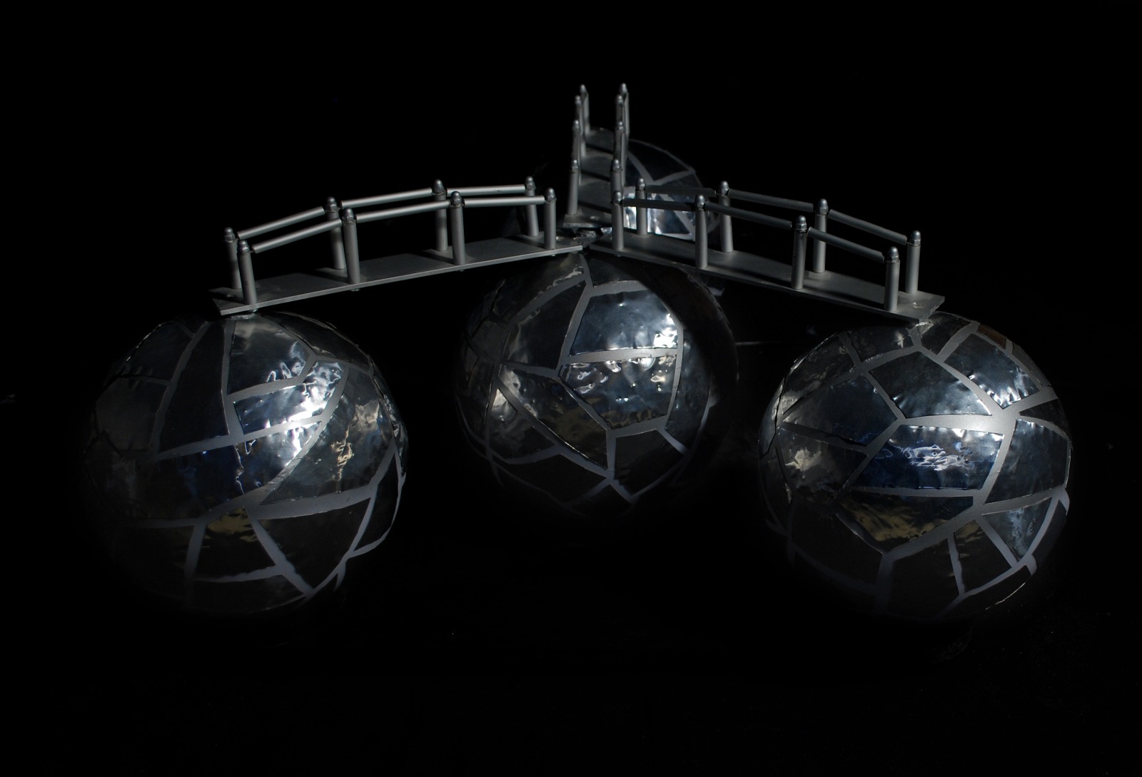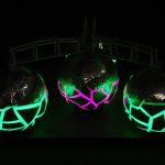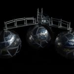 Mondi che appaiono in penombra, carichi di energia, legami che si saldano e che si rompono; una rappresentazione molecolare o planetaria a seconda che si voglia entrare nel microcosmo o nel macrocosmo. Elementi in equilibrio o disequilibrio, connessi o sconnessi, creano comunque l’energia che è vita