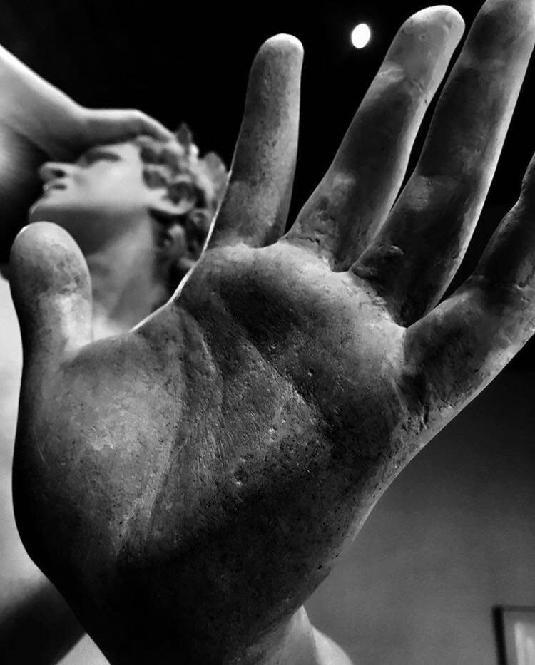 Visi, sguardi, epidermidi intensamente teatrali, come quelli di marmo e bronzo nelle opere di Castaldo, per il quale in esse «ciò a cui si assiste è una tragedia greca», ricordando con Roland Barthes che «non è attraverso la Pittura che la fotografia perviene all’arte, bensì attraverso il teatro». Ed ecco che le pietrificazioni narrative ed emotive di altri artisti del passato divengono nodi d’azione e pause sceniche di distensione, gesti, attimi, un punctum emozionale e filosofico tanto più vero quanto momentaneo ed evanescente, e quindi permanentemente autentico nel suo respirante vibrare e mutare.