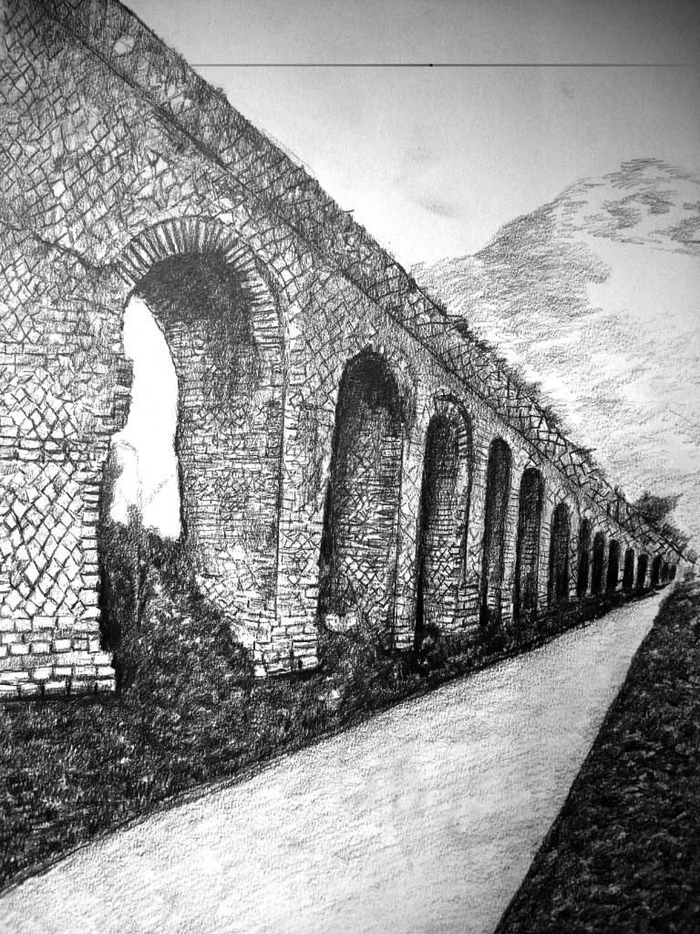 Con la consueta maestria, che lo contraddistingue, ne tratteggia non solo i tratti lineari e volumetrici, ma intraprende un'azione “amorevole” che proietta il “locus” in un'atmosfera fantastica ove il passato può fondersi al reale in un messaggio di sedimentazione di sensazioni; la stessa funzionalità del manufatto passa, così, in second'ordine di fronte al recupero dei ricordi che le stesse pietre serbano nella loro essenza.
