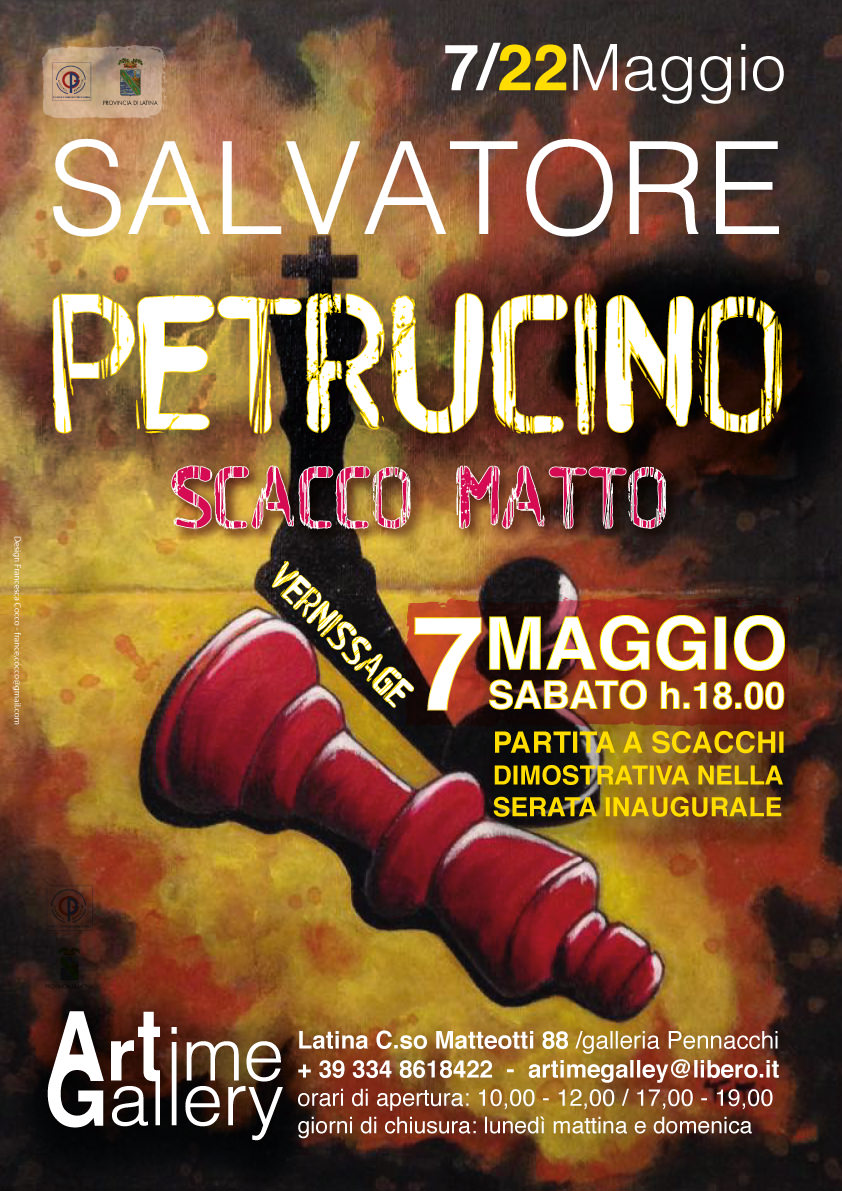 Il vernissage a Latina interno Galleria Artime Gallery ore 18,00 ingresso libero. Sotto Galleria Pennacchi Dimostrazione partita a scacchi serata inaugurale, con possibile evento nei giorni della mostra di partite all'interno della galleria .