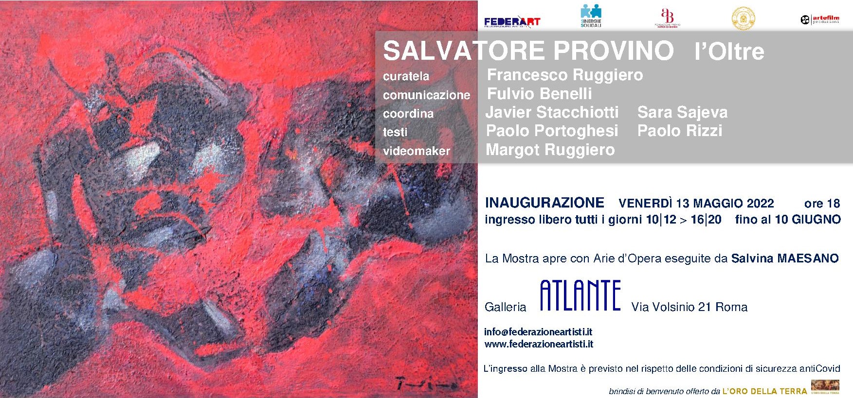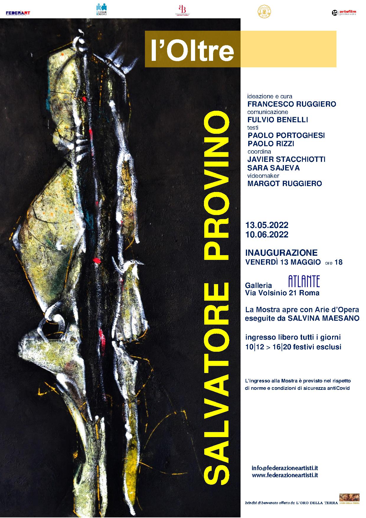 Si inaugura a Roma la Mostra personale di Salvatore Provino intitolata l’Oltre. Dopo un ventennio di assenza in esposizione Opere di grande impianto realizzate dal 2000 ad oggi. L’evento, curato da Francesco Ruggiero, si inaugura Venerdì 13 Maggio 2022 alle ore 18 nella Galleria ATLANTE di Roma