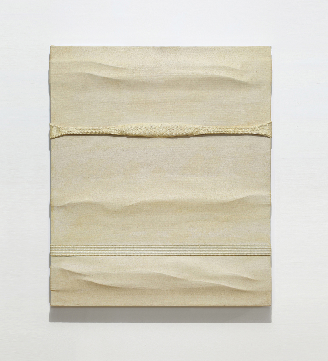 Nella prima sala al piano superiore della galleria sono esposte opere che segnano il passaggio di Salvatore Scarpitta da una pittura materico-espressionista a una nuova figurazione, che si concretizza dapprima nelle tele estroflesse, come nei due "Senza titolo" (1957), e poi nelle bende e nelle fasce, come in "Senza titolo" (1958). I lavori realizzati alla fine degli anni Cinquanta, dei quali sono visibili alcuni esempi anche negli uffici della galleria, segnano un momento fondamentale nella ricerca dell’artista poiché in essi si attiva l’idea di una produzione “astratto-reale”, che si discosta dal processo mimetico e che diviene funzionale alla logica del costruire, del muoversi in un territorio.