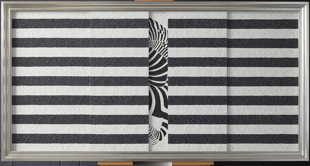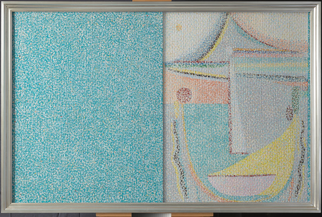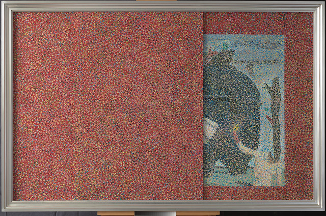 Per ciascuno di questi artisti Havadtoy sceglie un loro quadro e ne ricrea due copie fedeli, ma alla propria maniera, con il suo stile inconfondibile: infiniti punti che non permettono di pensare a un punto finale. Delle due opere realizzate una si può vedere interamente, mentre davanti alla seconda Havadtoy colloca una quinta scorrevole, che i visitatori possono spostare, decidere di aprire o no, vedere o non vedere. “La cosa interessante – sottolinea l’artista – è che, se tu chiudi, pensi che il problema non ci sia più, che scompaia, quindi siamo noi a voler guardare in faccia la realtà, oppure far finta che non esista o, peggio, decidiamo di ignorarla”.